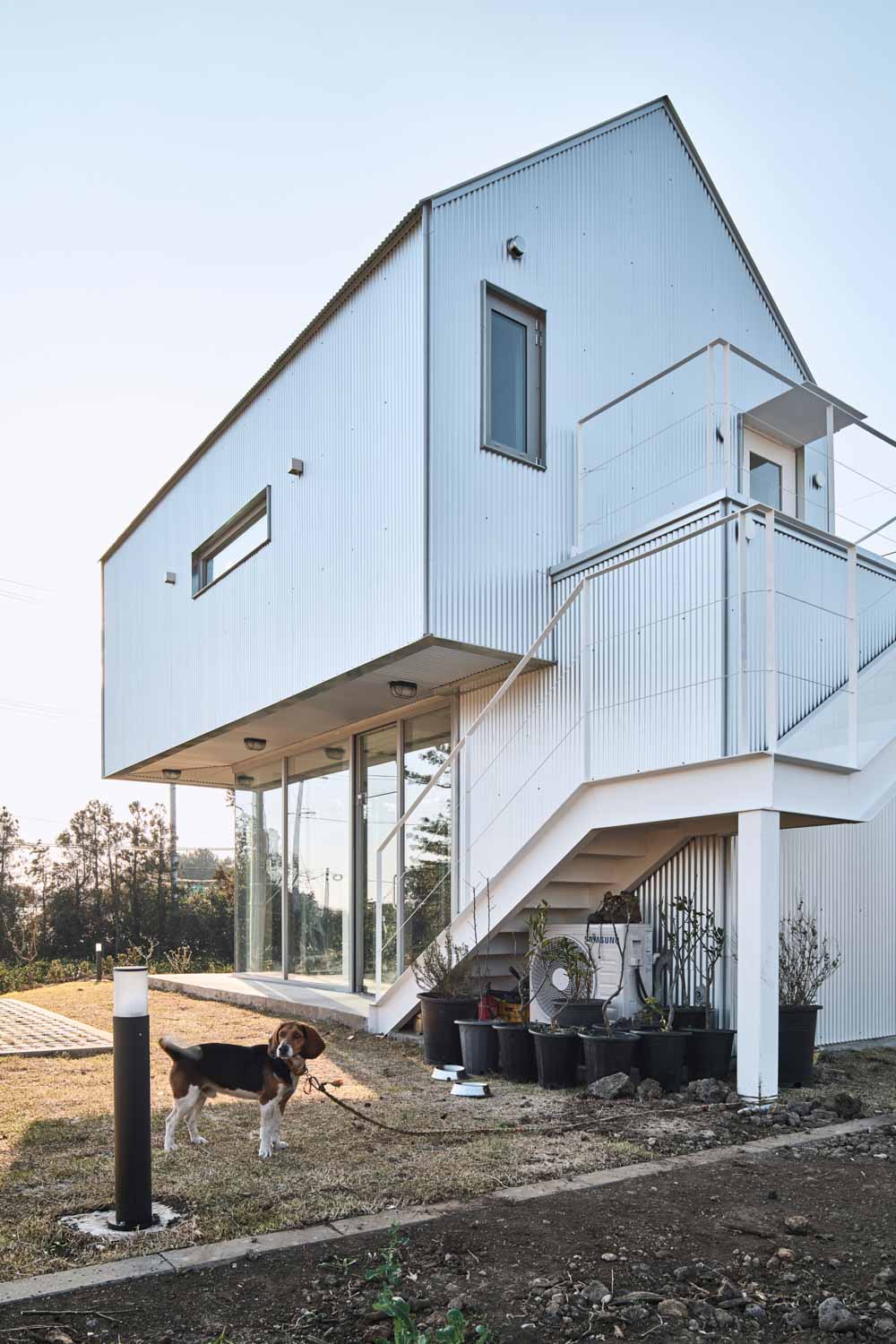 파형의 도장이 없는 원형의 골강판은 빛을 받아들이는 밝은 재료이고, 태흥리의 하늘과 같은 색을 띤다.