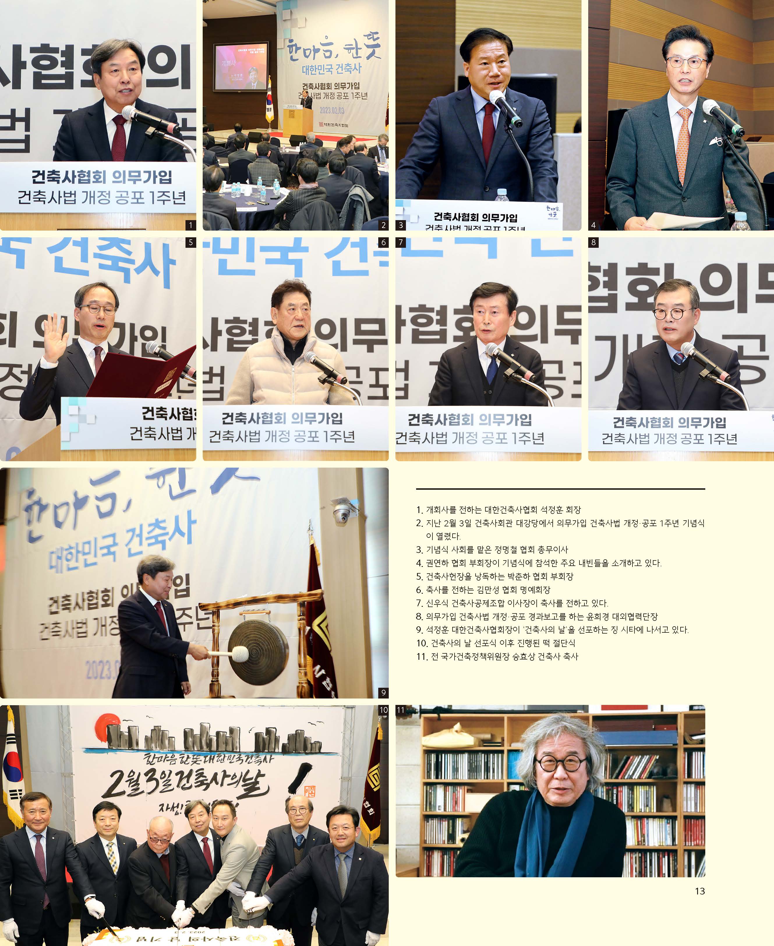 “의무가입 건축사법 개정·공포 2월 3일 ‘건축사의 날’로 선포” 대한건축사협회 의무가입 건축사법 개정·공포 1주년 기념식 화보 2023.2