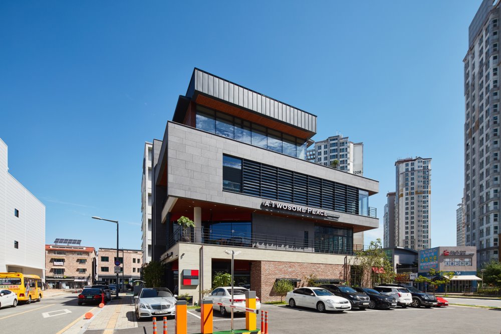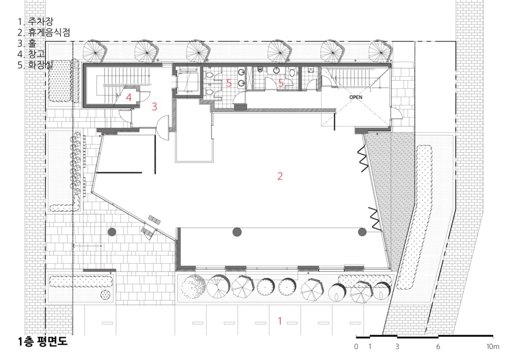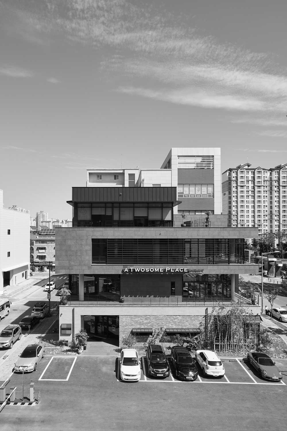 본 건물은 건축주가 본인 회사의 사옥을 입주 시키고 커피숍을 직접 운영할 생각을 가지고 시작한 프로젝트다. 커피숍 브랜드는 이미 결정이 돼 있었고, 건축주는 값비싼 땅 이지만 과감히 지상의 주차장을 최대한 확보해 주길 주문했다.