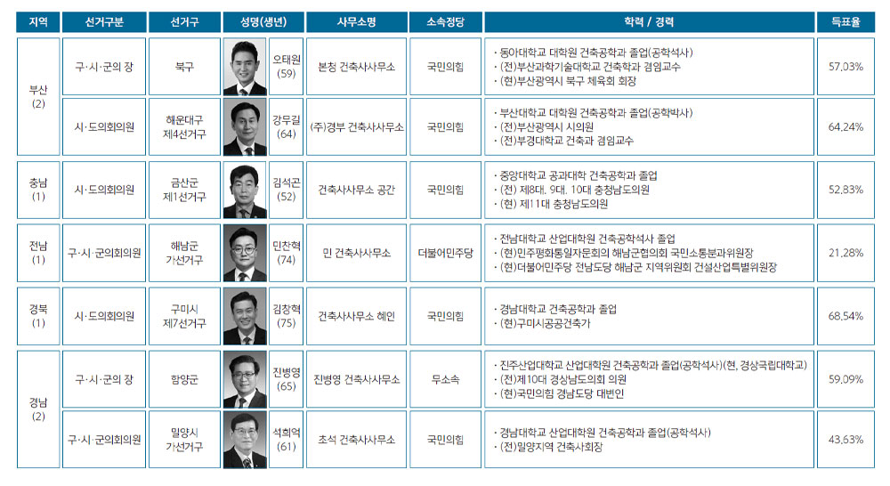 6·1 전국동시지방선거에서 건축사 7인 최종 당선