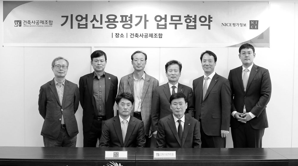 건축사공제조합은 5월 17일 건축사회관 6층 조합 회의실에서 NICE평가정보(주)와 업무협약을 체결했다. 조합원이 신용평가를 할 때 발생하는 수수료를 할인 받는 것이 협약 주요 내용이다.