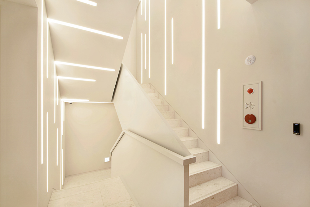 The client and the architect spent a lot of time together, and it took a long time to accept the social and environmental limitations or disadvantages of the site and turn them into an advantage, rather than going against them. Meanwhile, we put more value on making a creative space, even if we gave up a little bit of physical space. The result of this hard work remains throughout the space, and the terraces on the third and top floors are able to make creative breathing holes that bring the distant view of Mt. Namsan into the building.