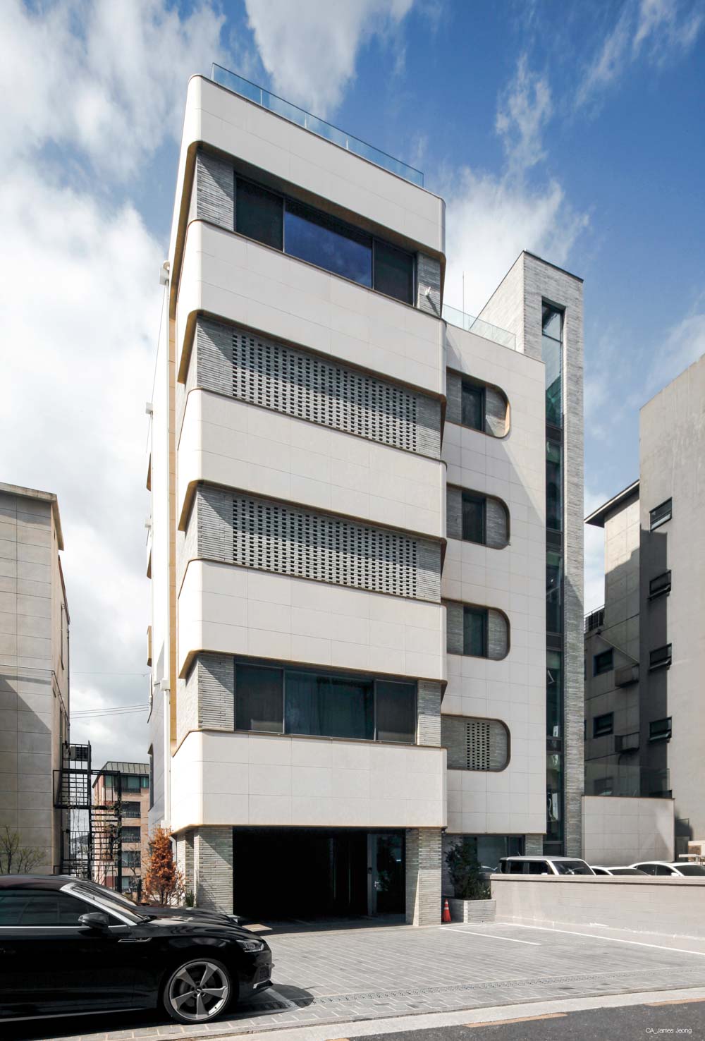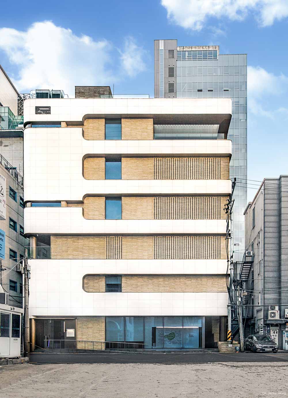 P NATION Bldg. Architect | Park, Bong-joon _ YnP Architects Client | Park, Jae Sang(PSY) Supervisor | Park, Bong-joon _ YnP Architects Construction | Doosung Co., LTD Project team | Yoo, Woong-Duk / Jung, Jin-Uk / Kim, Min-Kyung Location | 21, Nonhyeon-ro 151-gil, Gangnam-gu, Seoul, Korea Program | Neighbourhood living facility Site area | 389.00㎡ Building area | 185.99㎡ Gross floor area | 1,211.78㎡ Building to land ratio | 47.81% Floor area ratio | 184.97% Building scope | B2F - 5F Structure | RC Exterior finishing | Crema bello, Metal, Q-block(Concrete brick), Low-E Double glazing window Design period | Dec. 2017 - Oct. 2018 Construction period | Dec. 2018 - Apr. 2020 Photograph | James Jeong & YnP Architects Structural engineer | Lee Geon Structural Engineering Co., LTD Mechanical engineer | Cheon Il Engineering & Construction Co., LTD Electrical engineer | Cheon Il Engineering & Construction Co., LTD Fire engineer | Cheon Il Engineering & Construction Co., LTD |