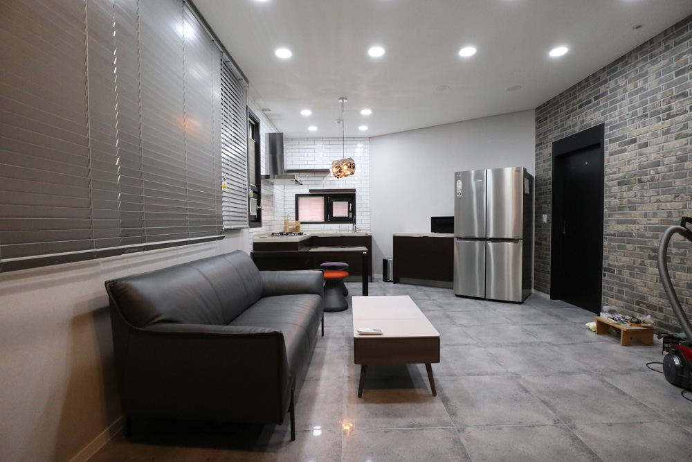 Interior finishing plan _ As for the finishing material for the art wall in the living room, which is the main part of this house, the material that connects the exterior and the interior was selected to satisfy a sense of unity and luxury based on the client's idea.