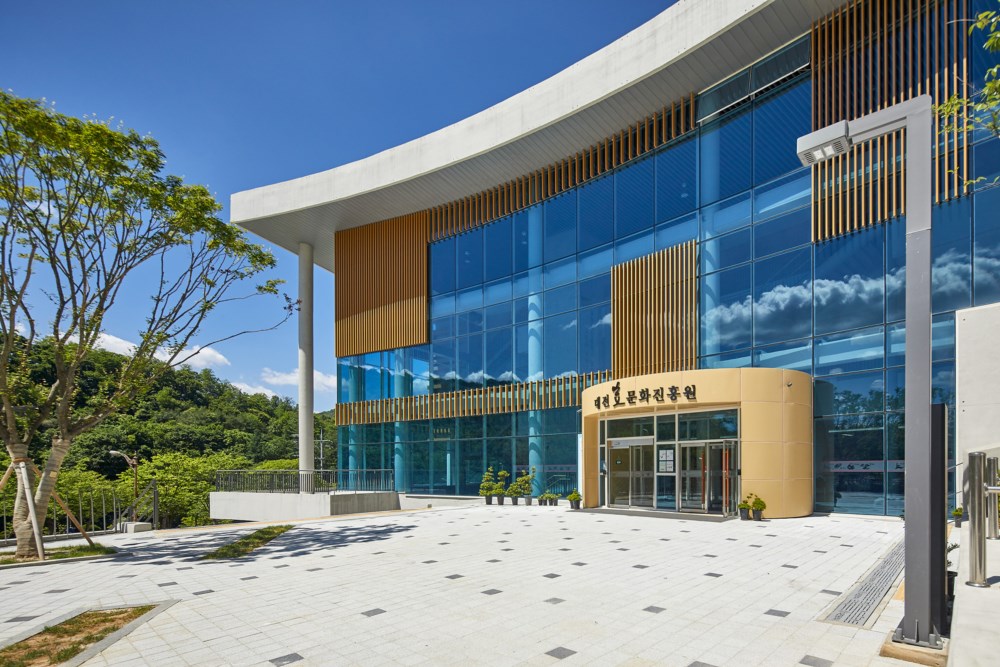 | 효문화진흥원 설계자 ┃ 조도연 KIRA ┃ (주)디엔비 건축사사무소 건축주 | 대전광역시장 감리자 | 조차연 _ 건축사사무소 조성건축 시공사 | (주)녹원종합건설(파크건설) 설계팀 | 이경환, 조보광, 홍훈표, 유영관, 김성진 대지위치 | 대전광역시 중구 뿌리공원로 47일원 주요용도 | 교육연구시설 대지면적 | 22,300.00㎡ 건축면적 | 3,515.30㎡ 연면적 | 8,342.05㎡ 건폐율 | 15.76% 용적률 | 30.39% 규모 | 지하 1층, 지상 3층 구조 | 철골조, 철근콘크리트조 외부마감재 | 노출콘크리트, 접합제 진강판, 알루미늄루버, 합성목재루버, 점토벽돌, 로이복층유리 내부마감재 | 화강석물갈기, 혼합질비닐계무석면타일, 목재흡음판, 카펫타일, 친환경페인트, 석재타일 설계기간 | 2013. 06 ~ 2014. 08 공사기간 | 2015. 02 ~ 2017. 02 사진 | D&B 구조분야 : 동양구조 기계설비·전기·소방분야 : (주)수양ENG |