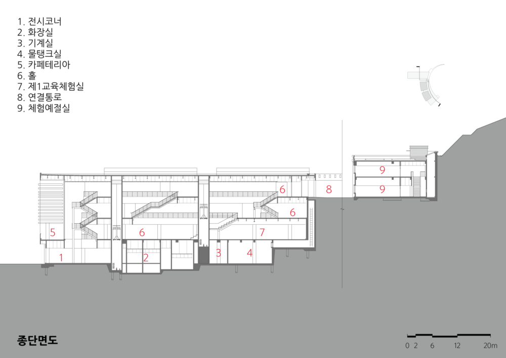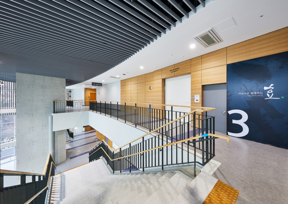 Filial Duty Culture Institute Architect | Cho, Doyeun _ D&B Architecture design group Client | Mayor of Daejeon Metropolitan City Supervisor | Cho, Chayeon _ Joseong Architecture Construction | Nokwon Engineering & Construction Project team | Lee, Kyonghwan / Cho, Bokwang / Hong, Hunpyo / Yu, Youngkwan / Kim, Seongjin Location | 47, Ppurigongwon-ro, Jung-gu, Daejeon, Korea Program | Institute of education Site area | 22,300.00㎡ Building area | 3,515.30㎡ Gross floor area | 8,342.05㎡ Building to land ratio | 15.76% Floor area ratio | 30.39% Building scope | B1F - 3F Structure | Steel Framed, RC Exterior finishing | Exposed concrete, Damping and Clad steel sheet, Aluminium louver, WPC louver, Clay brick, Low-emissivity coated glasses Interior finishing | Abrasive granite, Composition PVC tile, Wood soundabsorbing plate, Tile carpet, Eco-friendly paint, Stone tile Design period | Jun. 2013 ~ Aug. 2014 Construction period | Feb. 2015 ~ Feb. 2017 Photograph | D&B Structural engineer | Dongyang Structure Mechanical·Electrical·Fire engineer | Suyang Engineering |