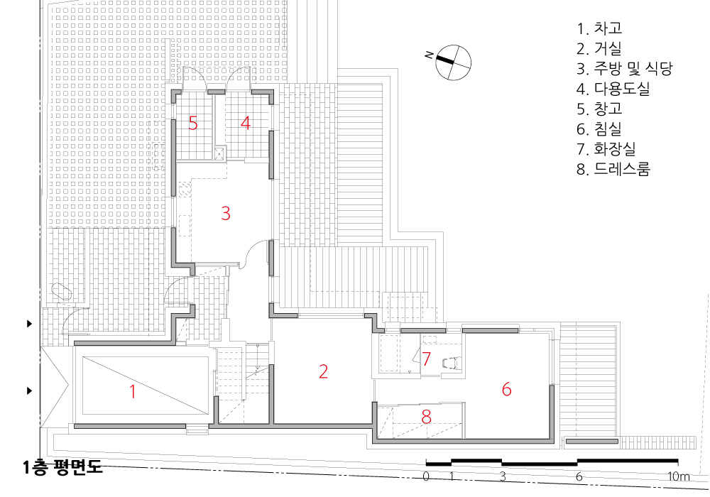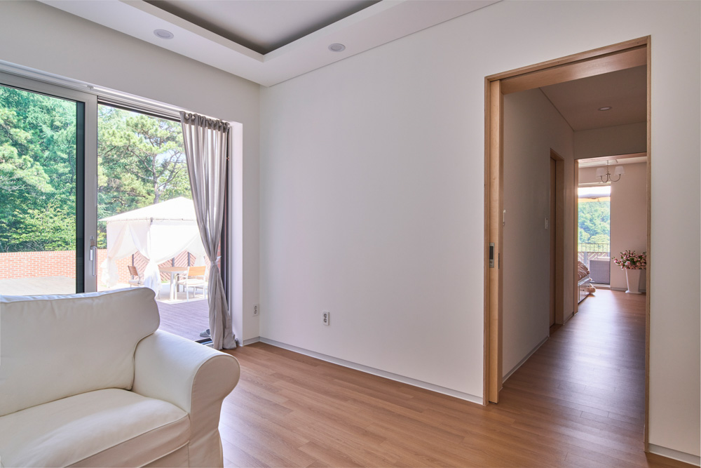 The site was open to the south with a road to the north, having a good view and lighting. Facing the forest to the east, it was good land in many ways in terms of residential location, where you can directly enjoy nature. After a few meetings, it was designed to surround the spacious site in the form of the nieun(ㄴ)-shaped mass.