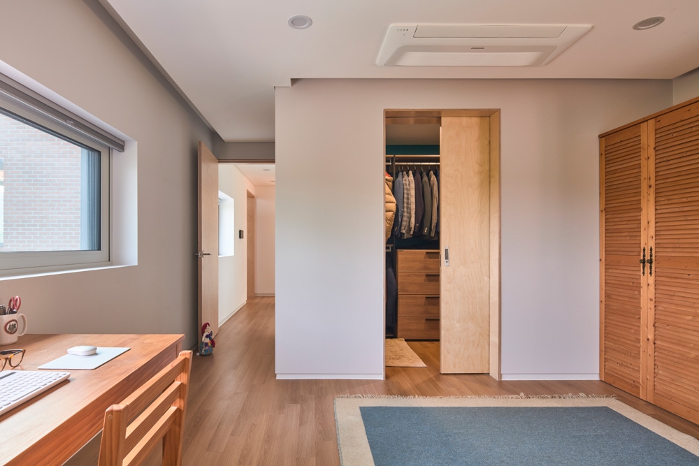 1층은 주방과 거실, 침실을 배치하였고, 2층에도 침실, 화장실 등을 두었다. 또 2층에는 별도의 가족실을 두어 제2의 거실 같은 공간으로 만들었다. 난방비가 많이 드는 1~2층이 트인 높은 공간보다는 단층 공간을 선호하였고, 거실을 크게 만드는 것보다는 각 공간들을 충실히 하고자 하였다. 또한 좀 더 큰 보일러실이 필요하지만 난방 효율이 우수한 지열보일러를 설치하기도 하였다. 건축주의 다양한 취향과 요구 조건들이 세심하게 반영되어 가족에게 맞는, 화려하기보다는 내실 있는 집이 만들어질 수 있었다.