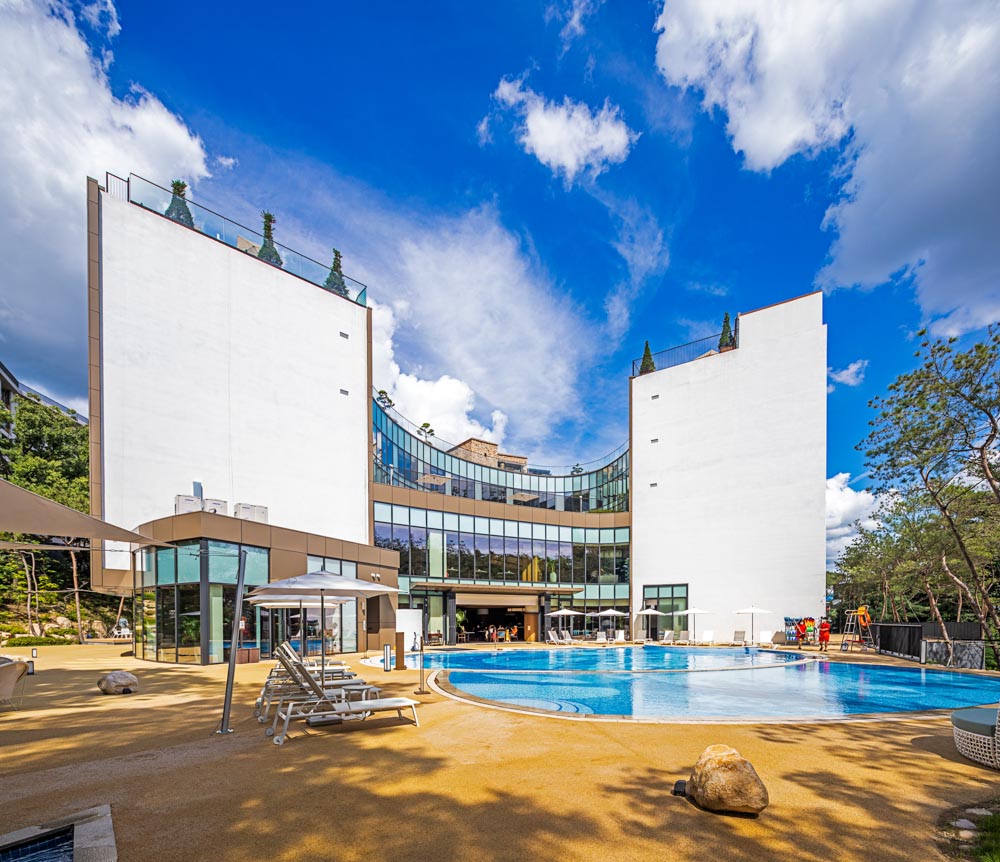 대지면적 약 80,000제곱미터, 연면적 약 99,800제곱미터에 지하 3층, 지상 7층 규모로 숙박시설 14개 동, 문화 및 집회시설 1개 동, 총 15개 동으로 구성되어 있다. 객실은 334실(방수: 698개)로 사우나, 실내외 수영장, 옥상정원, 레스토랑, 연회장, 산악박물관 등 다양한 부대시설을 갖추고 있다.