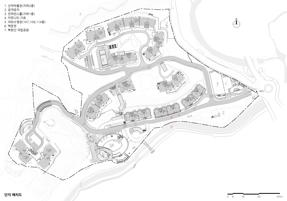 PARASPARA Seoul Architect | Kim, Kihan_JUNGLIM Architecture CO., LTD. Collaborative design | Ken Sungjin Min(AIA) _ SKM Architects Client | Mt. Bukhan Resort at the summit Supervisor | JUNGLIM Architecture CO., LTD. Construction | Samjung Corporation Project team | JUNGLIM Architecture CO., LTD. Kim, Younghun / Kwon, Sunchan / Koo, Boneuk / Lee, Yeachan SKM Architects Han, Hyunsoo / Ryu, Hyunsoo / Kim, Seungwook / Oh, Jongmu Design intention realization | JUNGLIM Architecture CO., LTD. + SKM Architects Location | 346, Ui-dong, Gangbuk-gu, Seoul, Korea Program | Accommodation(condominium) Site area | 80,146.40㎡ Building area | 14,909.16㎡ Gross floor area | 99,829.45㎡ Building to land ratio | 18.60% Floor area ratio | 78.99% Building scope | B3F - 7F Structure | RC Exterior finishing | Granite stone Interior finishing | Stone(MOCA CREAM), Wood(OAK) Design period | August, 2018 – November, 2019 Construction period | November, 2019 – July, 2021 Photograph | Kim, Hyunsoo / Sim, kisub(Dron) Structural engineer | I’st Tech Mechanical engineer | Jungdo Electrical engineer | jin electric engineering Fire engineer | Korea Fire Protection UBIS |
