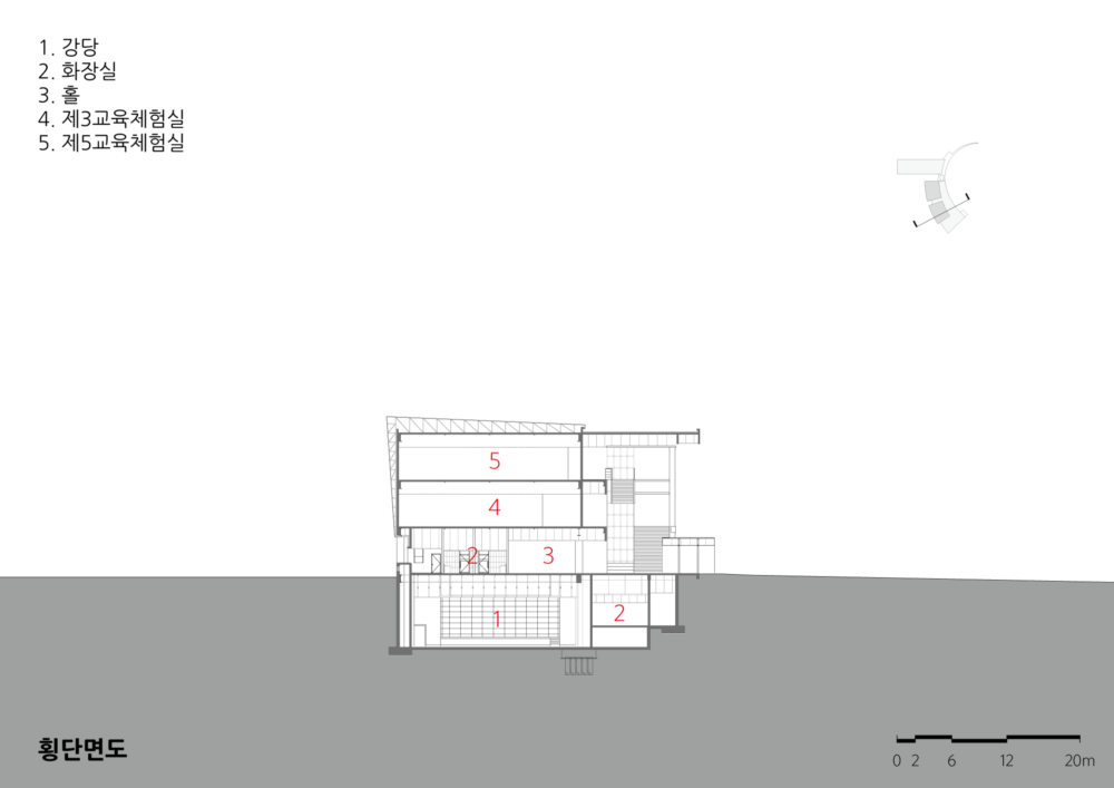 Filial Duty Culture Institute Architect | Cho, Doyeun _ D&B Architecture design group Client | Mayor of Daejeon Metropolitan City Supervisor | Cho, Chayeon _ Joseong Architecture Construction | Nokwon Engineering & Construction Project team | Lee, Kyonghwan / Cho, Bokwang / Hong, Hunpyo / Yu, Youngkwan / Kim, Seongjin Location | 47, Ppurigongwon-ro, Jung-gu, Daejeon, Korea Program | Institute of education Site area | 22,300.00㎡ Building area | 3,515.30㎡ Gross floor area | 8,342.05㎡ Building to land ratio | 15.76% Floor area ratio | 30.39% Building scope | B1F - 3F Structure | Steel Framed, RC Exterior finishing | Exposed concrete, Damping and Clad steel sheet, Aluminium louver, WPC louver, Clay brick, Low-emissivity coated glasses Interior finishing | Abrasive granite, Composition PVC tile, Wood soundabsorbing plate, Tile carpet, Eco-friendly paint, Stone tile Design period | Jun. 2013 ~ Aug. 2014 Construction period | Feb. 2015 ~ Feb. 2017 Photograph | D&B Structural engineer | Dongyang Structure Mechanical·Electrical·Fire engineer | Suyang Engineering |