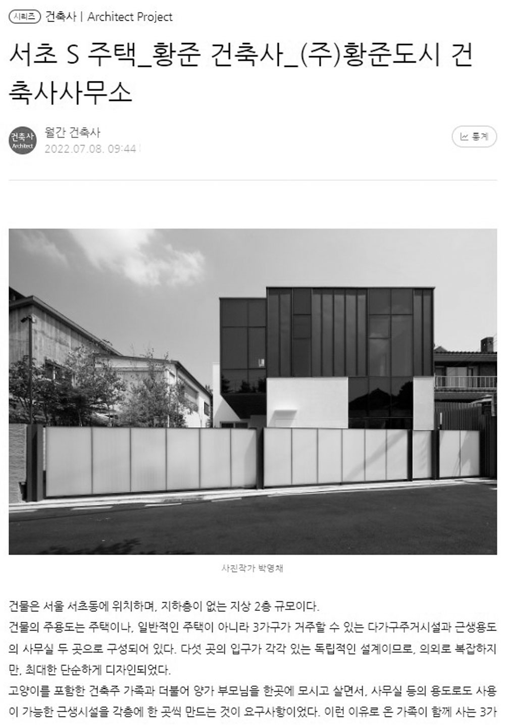 협회는 건축사들의 작품을 비롯해 비평, 인터뷰, 에세이, 칼럼, 건축 관련 뉴스를 네이버 포스트에 올릴 계획으로, 기 게재된 건축사들의 작품들도 순차적으로 등록할 예정이다. ‘뉴스’ 시리즈에서는 대한건축사협회 건축사신문 기자들이 발품을 팔아 취재한 기사를 살펴볼 수 있다.
