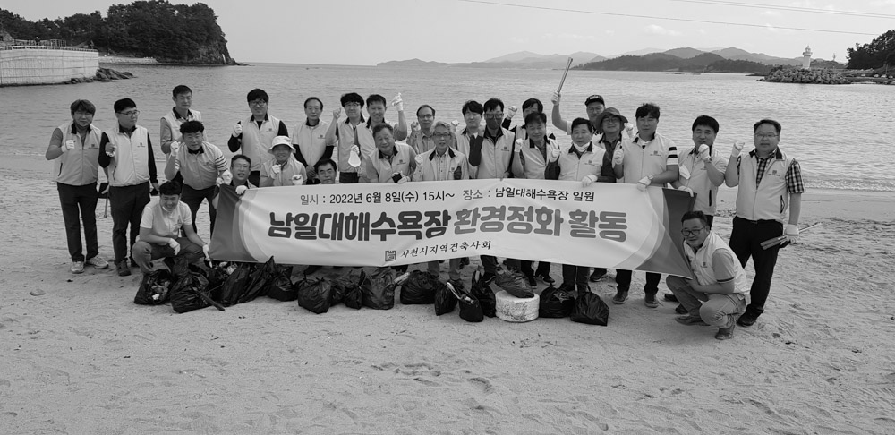 경상남도건축사회 사천지역건축사회는 6월 8일 남일대해수욕장 일원에서 여름맞이 환경정화 활동을 실시 했다. 깨끗하고 아름다운 사천만들기 일환으로 이뤄진 이날 봉사활동은 해변 일대를 걸으며 주변에 버려진 생활 쓰레기들을 수거하는 활동으로 진행됐다. 활동에 참여한 사천지역건축사회 임원과 회원들은 지역 주 민들에게 아름다운 해변의 경치와 해수욕장을 쾌적하게 이용할 수 있도록 정화 활동에 매진했다.