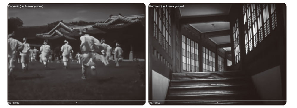 영화가 시작되며 “풍운의 이조 말엽 광무(光武) 19년, 민생은 도탄에 빠지고 정국은 극도로 어지러워갈 무렵 나라의 장래를 근심하면서 기울어져 가는 국운을 바로잡으려는 젊은이들이 있었으니 바로 민겸호(閔謙鎬) 등에게 살해당한 중신(重臣)의 자손들로서 대원군과 내통이 있는 이활민이란 선비의 지도 아래 암약(暗躍)하고 있었다. 그들이 모인 곳은 활민숙(活民塾)이란 서재(書齋)였다”라고 서술하면서 ‘젊은 그들’의 의미를 암시한다.<사진 1>
