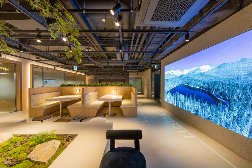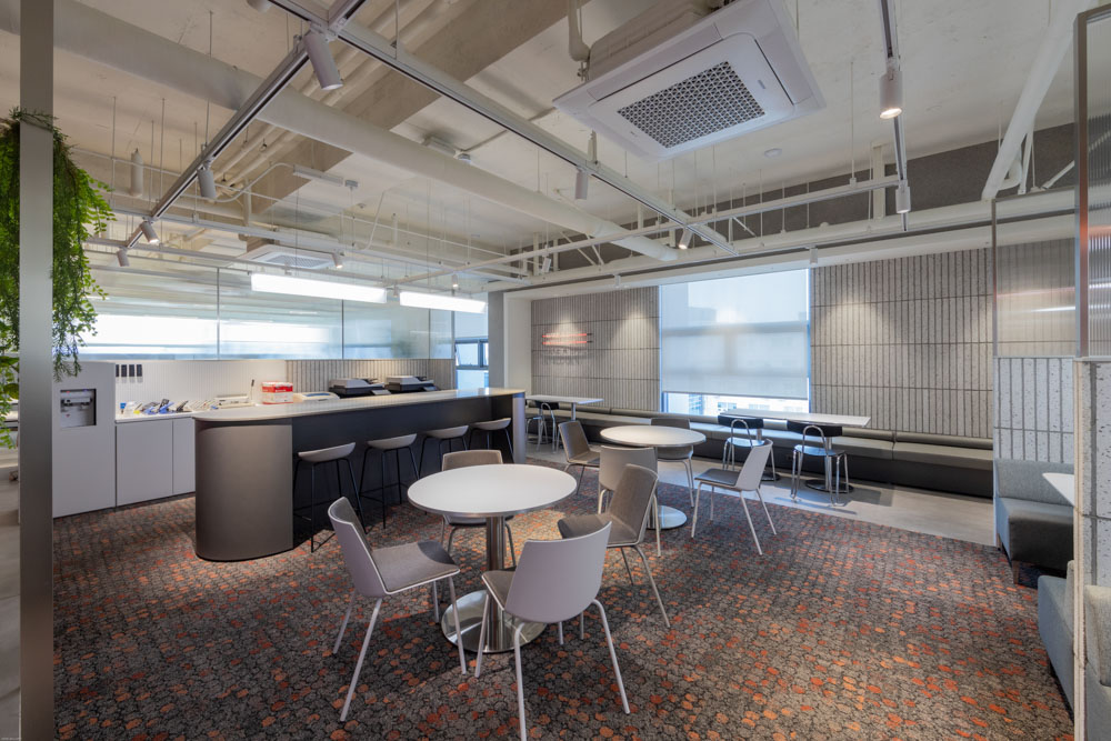 The curved facade in a zigzag shape starting from the low-rise horizontal space expresses the overall appearance of the building in various movements. This expresses the diversity of the urban landscape according to the location of the surrounding street space where the building is visible. In the indoor work space, the shape of the window that changes depending on the floor leads to the diversity of the work environment that includes lighting, ventilation, and view.