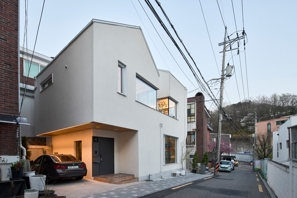 Hour House Architect | Jung, Goowon_DAAL Architects Construction | Doulim Location | 30, Songjuk-gil, Seodaemun-gu, Seoul, Korea Program | Single Family House Site area | 129.00㎡ Building area | 74.44㎡ Gross floor area | 137.62㎡ Building to land ratio | 57.7% Floor area ratio | 106.68% Building scope | 3F Structure | RC Exterior finishing | Stucco external Insulation system, Tile, Pre-coated metal roof, Low-E insulation glass Interior finishing | Vinyl paint finish above concret, Vinyl paint finish above Gysum board Design period | Oct. 2018 - Mar. 2019 Construction period | Aug. 2019 - Feb. 2020 Photograph | Choi, Jinbo Structural engineer | HUB STRUCTURAL ENGINEERING CO.ltd Mechanical engineer | SUNWOO ENGINEERING Electrical engineer | SUNWOO ENGINEERING |