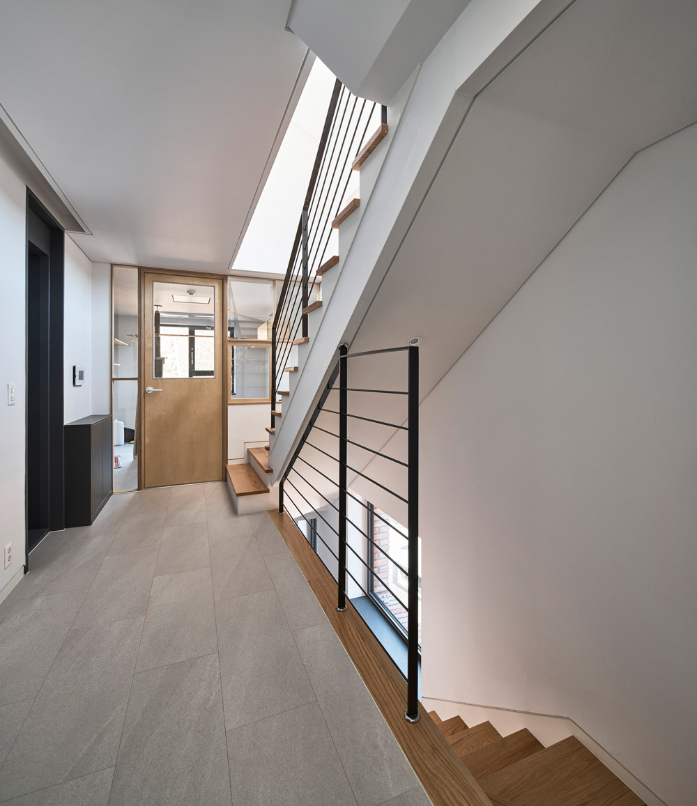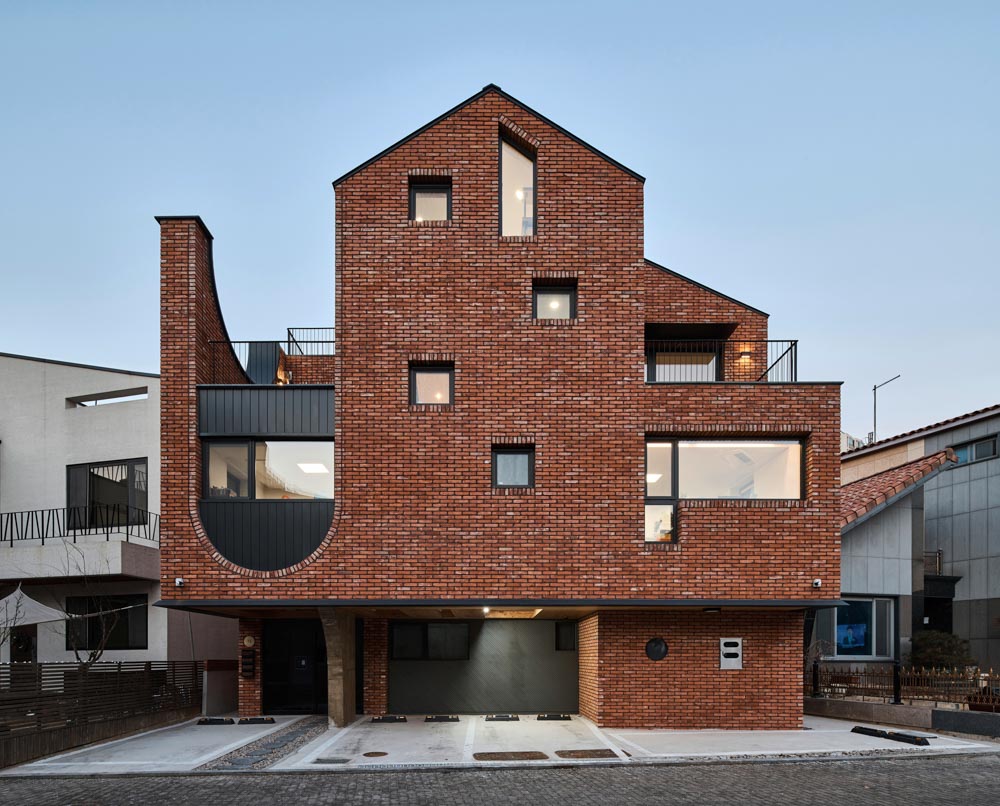House for three families below the moon Architect | An, Taeman · Song, Jeonghan_Architectural Design Group HAEDAM Client | Im, Chaebin / Kim, Boram Construction | HAEDAM CM Project team | Do, Younggyu Location | Gyoha-ro 133beon-gil, Paju-si, Gyeonggi-do, Korea Program | Multi-household house Site area | 269.50㎡ Building area | 154.93㎡ Gross floor area | 305.45㎡ Building to land ratio | 57.49% Floor area ratio | 113.34% Building scope | 3F Structure | RC Exterior finishing | Brick, Surface cutting Interior finishing | Coated wallpaper, Birch plywood Design period | Dec. 2019 – Mar. 2020 Construction period | Mar. 2020 – Nov. 2020 Photograph | Choi, Jinbo Structural engineer | S-CUBE ENG Mechanical engineer | Sunin ENG Electrical engineer | Sunin ENG |