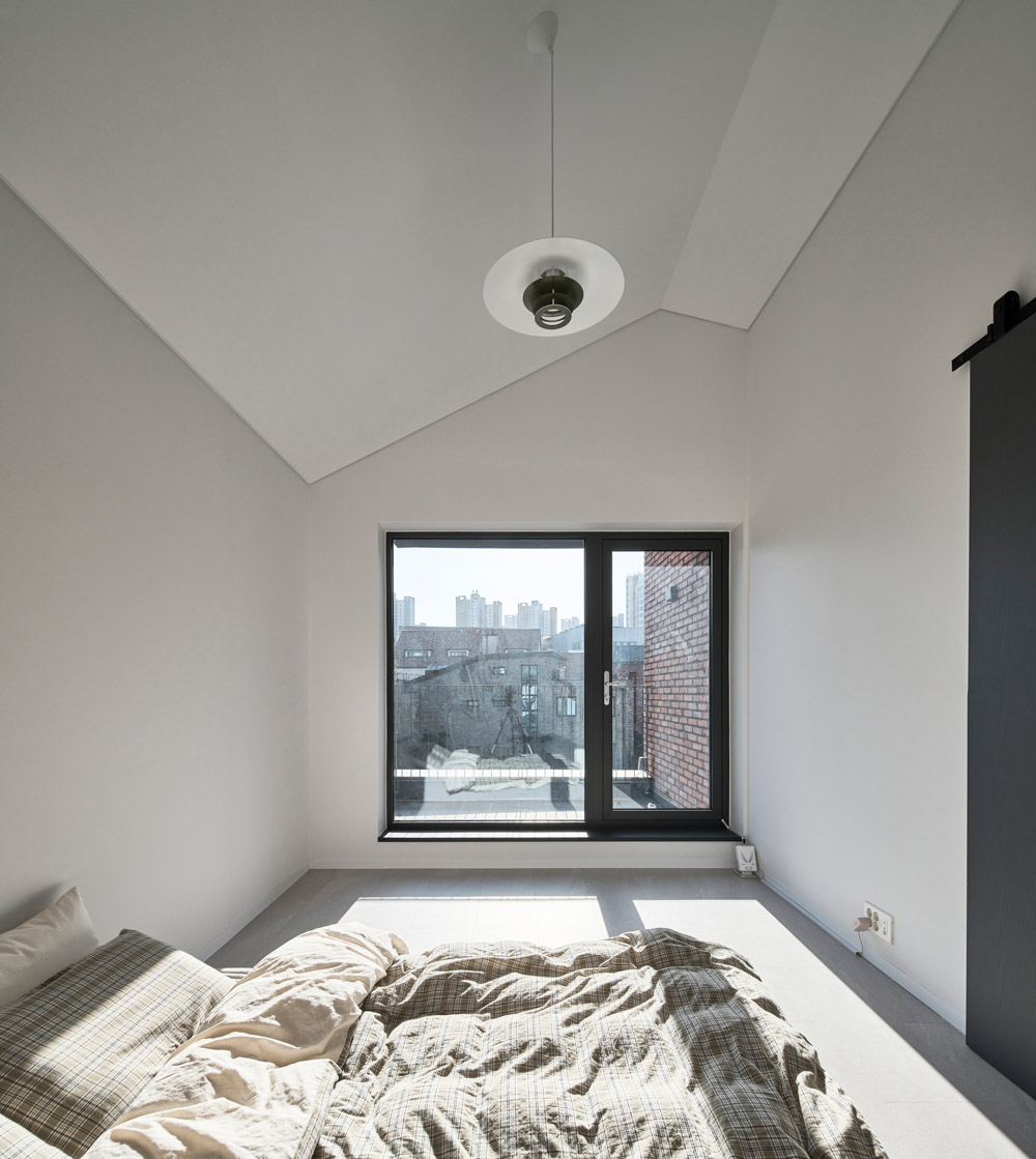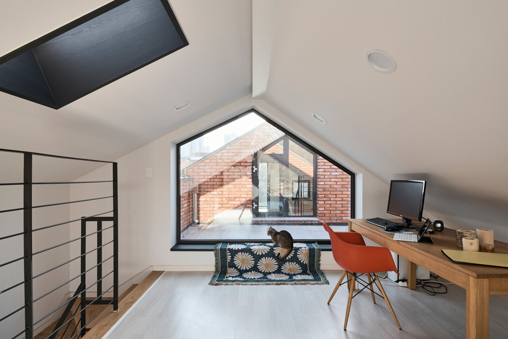 달의 형태를 닮은 창은 집에서 가장 감성적인 공간이면서, 마치 단독주택에 사는 듯한 분위기로 만든다. 이 집의 백미 중 하나는 건축주의 고양이들을 위한 공간이다. 호두와 콩이 두 냥이를 위한 방이 있으며 감성적인 벽과 문, 냥이들이 골골송을 부를 수 있는 삼각 프리즘 창 등이 있다. 3층에는 형태에 따른 자연스러운 높은 층고의 안방이 있고, 맨 위 공간에는 두 개의 다락이 있다.