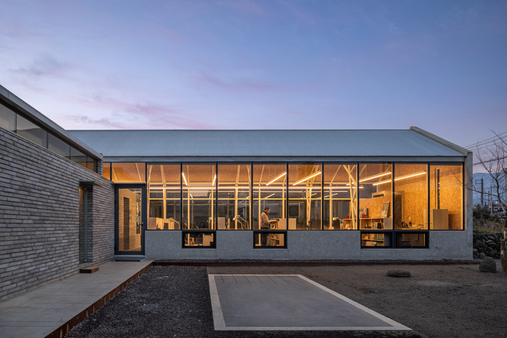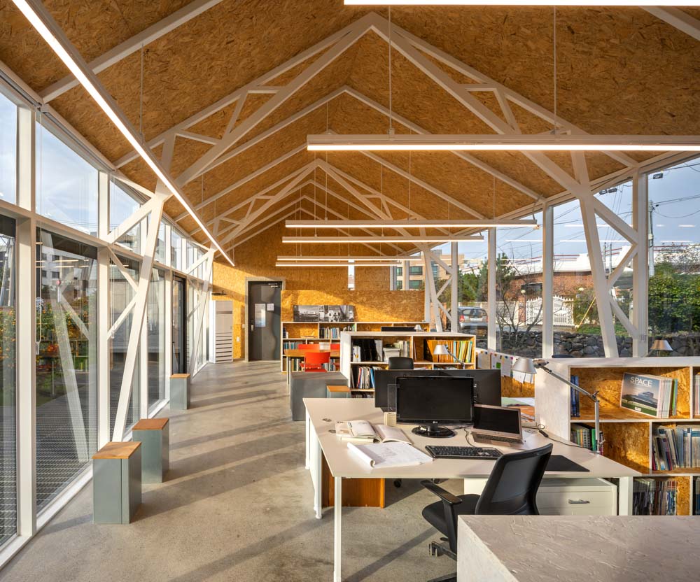 Sohun Architect | Yang, Hyunjun_SOHUN Architects & Planners Client | Yang, Hyunjun Construction | GAU archifactory Project team | Kim, Leesun Location | 67-18, Ganwoldong-ro, Jeju-si, Jeju-do, Korea Program | Office Site area | 345.00㎡ Building area | 131.37㎡ Gross floor area | 130.51㎡ Building to land ratio | 38.08% Floor area ratio | 37.83% Building scope | 1F Structure | Lightweight steel Frame Exterior finishing | Exposed concrete, Pair glass Interior finishing | Oriented strand board (OSB) Design period | Jul. 2019 – Oct. 2019 Construction period | Dec. 2019 – Sep. 2020 Photograph | Yoon, Joonhwan |