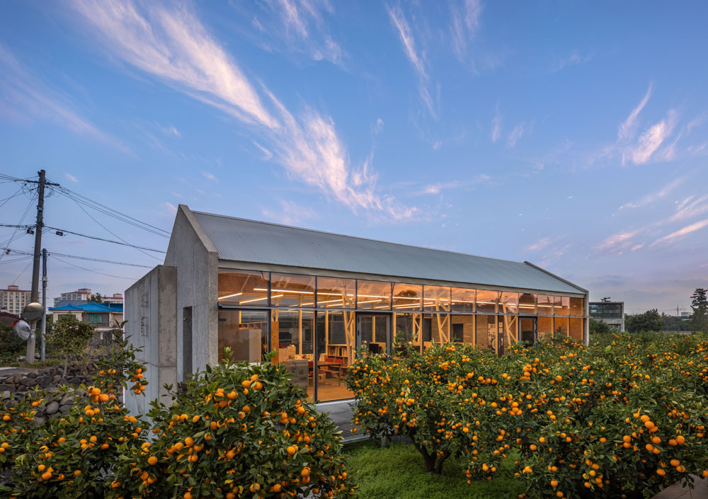 Soheon is an office project in Jeju's tangerine orchard. The orchard is in a village between Ido District and Ara District, under the active housing development, but still retaining the form of an old orchard in the city center. The inspiration for the office inside the orchard is the ordinary warehouse of the existing Jeju orchard, considering the connection of office spaces and roads around the orchard.