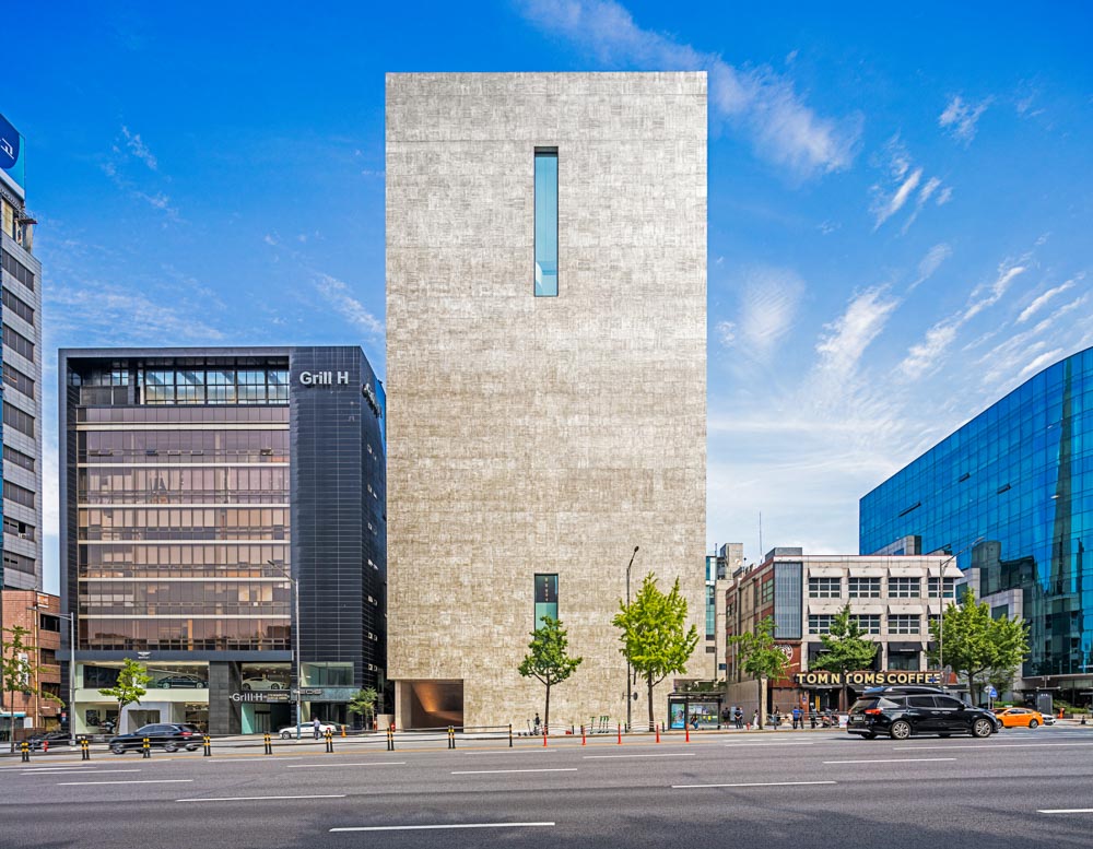 기_ 이러한 건축사의 의도를 기능적으로 해결하는 것이 주요 역할이기도 했습니다. 최적의 면적을 확보하기 위해 그리고 사선제한이 있기 때문에 각층을 서비스하는 코어가 가장 높은 쪽으로 있어야 합니다. 그게 바로 대로 쪽이었습니다. 코어가 대로 쪽으로 있으면 창문을 내기가 어렵게 됩니다. 그렇기에 매우 솔리드하고 가장 작은 창문을 낼 수 있는 조건이 형성된 것입니다. 기능적인 해결 방법과 건축사의 의도가 결합된 결과입니다.