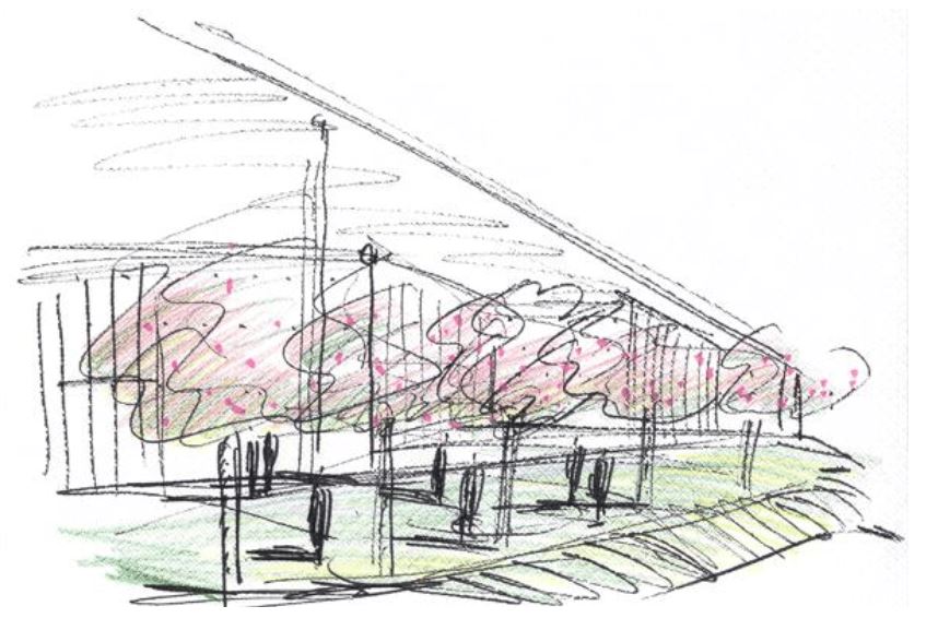 이 도축장은 고대 로마의 바실리카 양식과 중국의 풍수 학설인 ‘천원지’라는 전통적 이념을 공유하여 디자인된 것으로, 무량루 구조 설계, 8각형의 우산 기둥, 사다리, 소 등의 키워드가 이용됐다. 특히, 이 건축물을 지탱하고 있는 8각형의 우산 기둥은 300개에 이르며, 도축장 건축물의 가장 중요한 특징이기도 하다.