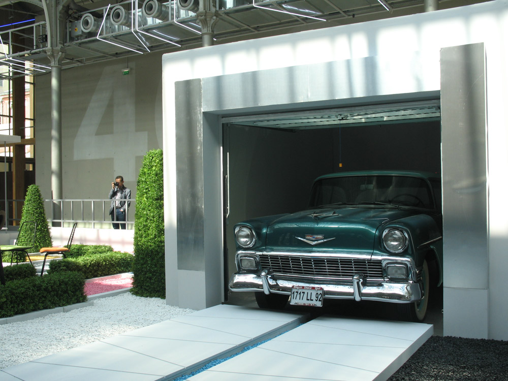 당시 촬영 세트는 1956년 니스 빅토린느 스튜디오(Les studios Riviera/le studios de la Victorine)에 설치했다가 촬영이 끝나자 멸실했다고 한다. 그 후 2009년 자끄 따띠에게 헌정된 전시회 ‘자끄 따띠: 되 땅, 트로아 무브망(두 번, 3개의 악장)’이 시네마테크 프랑세(Cinémathèque française)에서 열렸을 때 소개되었고, 성 꺄뜨르에서 재현 전시되었다. 성 꺄뜨르(Cent Quatre, 104, LE CENTQUATRE-PARISS[http://www.104.fr])란 2008년 11월 개관한 파리의 공공복합문화공간인데, 시(市) 장례장(1870년 착공, 1874년 개관)이 있던 곳이다. 지번이 ‘파리 19구 뤼 듀베르비유 104번지’라서 이 문화공간을 104로 명명했다.5) 소장 예술로는 현대미술, 조각, 회화, 그래픽아트, 사진, 뉴 미디어 필름 건축 디자인이다. 상설전시로 알고 몇 년 전 파리 출장 당시 찾아갔더니 그때 전시 후 철거했다고 해서 너무 아쉬웠다.