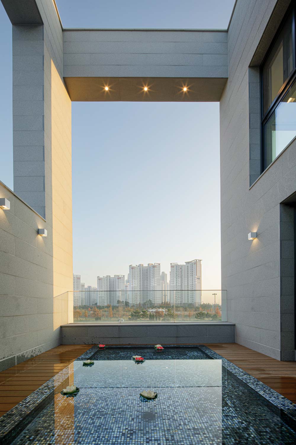 건물 남측의 창들은 자연과 내부공간의 관계에 매개 역할을 한다. 공간마다 특색 있는 재료와 공간을 구성하고 남측으로 차양역할을 할 수 있는 처마를 계획했다. 거실과 다이닝룸은 파노라마뷰를 가질 수 있는 창을 설치하여 자연을 최대한 받아들인다. 테라스 공간도 하나의 창 안에 프라이버시가 보호될 수 있는 공간으로 활용하였다.
