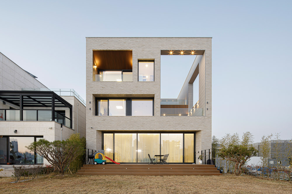 The site sits in a residential area in The County, Cheongna. It faces a 7-meter road to the north and nature to the south. It was designed to protect privacy from the road and embrace nature as much as possible to the south. Therefore, the north side came to have an entrance with eaves and minimum windows. The windows with various expressions were filled in the south by maximizing the legally available width.