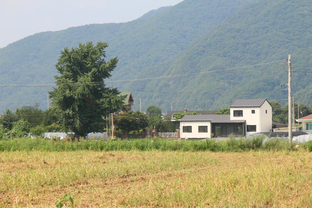 We visited the land for Sinmae House the next day after the first design meeting. It was a small, quiet town with no new houses in the last ten years. When we examined the boundary of the land, it was necessary to survey full-scale planning. As expected, the survey results showed that the neighboring crops and warehouses moved to this land to a large extent. This is common in rural villages with many old houses, but it is not a problem because there is an implicit agreement that has been around for a long time. Unless someone builds a new house, we have to solve this problem now that we have become someone. As we discussed an amicable solution, the client, who is not greedy, came up with a wise solution. The invaded neighbor's warehouse building will be adjusted at our client's expense, and the crops will only be removed to the minimum extent of construction until the harvest time.