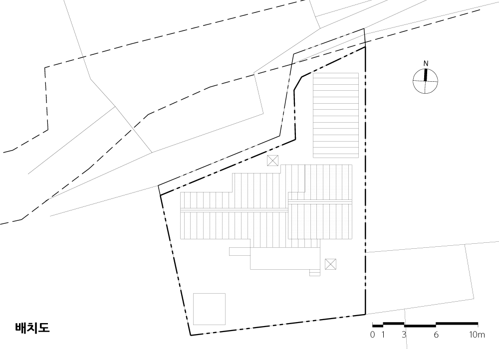 첫 설계미팅을 마치고 다음날 신매주택의 땅을 찾았다. 근래 10여 년 동안 새로운 집이 생긴 적이 없는 작고 조용한 마을이었다. 땅의 경계를 살펴보면서 본격적인 계획에 앞서 측량을 선행할 필요가 있어 보였다. 측량결과는 예상대로 이웃의 농작물과 창고가 상당부분 이쪽 땅으로 넘어와 있었다. 이런 일은 오래된 집이 많은 시골마을에서 비일비재하지만, 긴 시간 지내온 묵시적 합의가 있기에 딱히 문젯거리가 되지 않는다. 누군가 새로 집을 짓기 전까지. 이제 우리가 그 누구가 되었기에 이 문제를 해결해야 하는 상황이 되었다. 원만한 해결을 위해 상의한 결과 욕심 없는 건축주가 지혜로운 답을 내놓으셨다. 침범한 이웃집 창고 건물은 우리 건축주가 비용을 내어 조정하고, 농작물은 수확기까지 건축을 위한 최소 범위만 건드리기로.