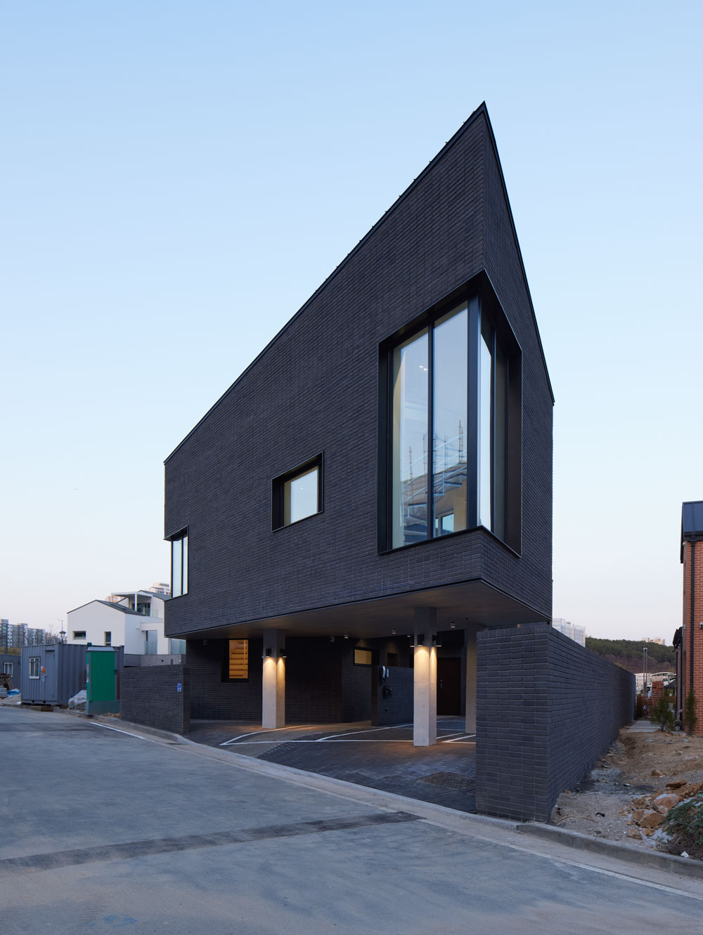 인근에서 가장 큰 필지인 대상부지는 규모나 위치적으로 주택단지의 중심적인 성격을 가진다. 무게감 있는 매스와 재료로 지역의 주요지가 되길 바랐다. 거기에 건축주가 추구하는 깔끔하고 정돈된 이미지를 구현하기 위해 최소한의 재료와 정리된 외장 색상을 적용하여 하나의 덩어리로 구현하고자 했다. 2가구가 사는 집이고 각자의 프라이버시를 지켜주기 위해 노력했지만, 형제는 한 가족에서 시작했고 지금도 깊은 유대감을 가진 모습을 투영하고자 했다.