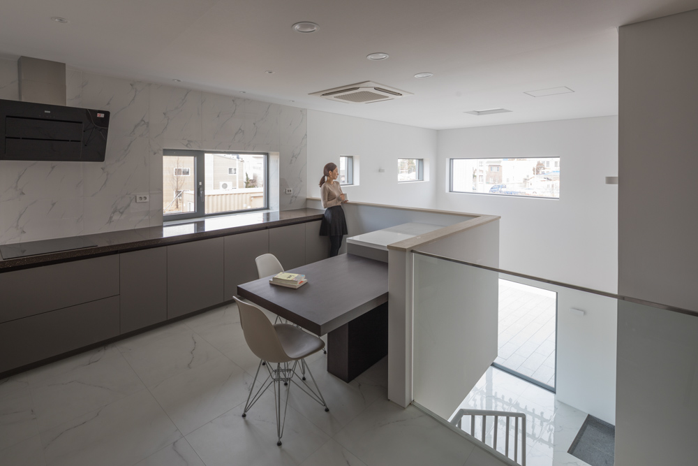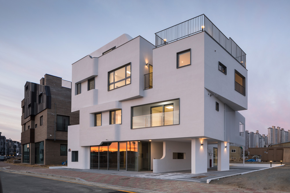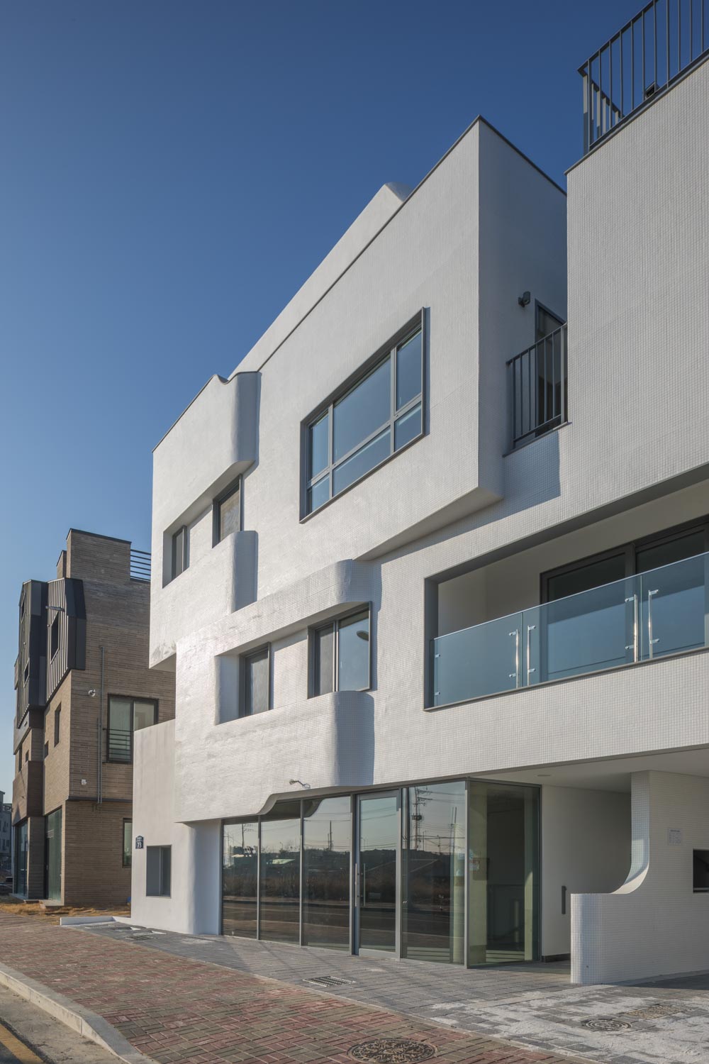 Mosaic Architect | Oh, Sinwook _ Architects Group RAUM Client | Lee, Seungjun Supervisor | Oh, Sinwook _ Architects Group RAUM Construction | Daejeong Construction Project team | No, Jungmin / An, Shin / Yu, Seongchul / Yoon, Jeongok / Choi, Yoonjeong / Kim, Dayeong / Im, Ahyun Location | 73, Myeongjigukje 12-ro, Gangseo-gu, Busan, Korea Program | Detached House(Multiplex House), Neighborhood Living Facility Site area | 272.00㎡ Building area | 159.23㎡ Gross floor area | 379.00㎡ Building to land ratio | 58.54% Floor area ratio | 139.34% Building scope | 3F Structure | RC Exterior finishing | Mosaic Tile(White), Exposed Concrete(Euro Form), PVDF Coating on Aluminum Louver(White) Interior finishing | Marble Tile, Wood Flooring, Silk Wallpaper Design period | Oct. 2018 – Dec. 2018 Construction period | Apr. 2019 - Dec. 2019 Photograph | Yoon, Joonhwan Structural engineer | In Structure Mechanical engineer | Shinheung ENG Electrical engineer | Yeongshin ENG |