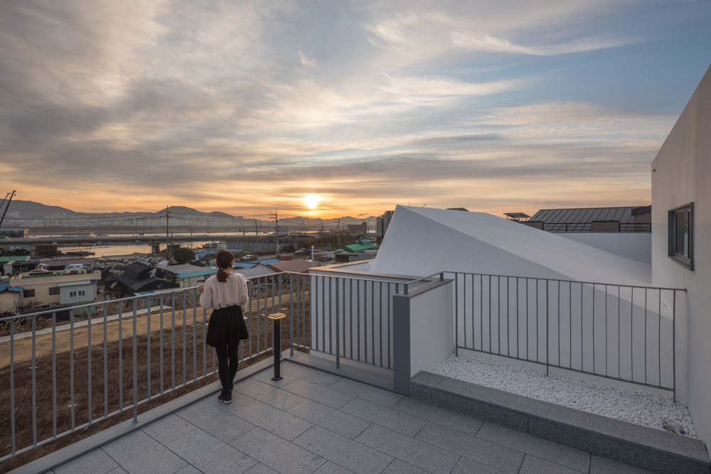 In the process of planning the mother's house and the son's house, the entire space was constructed based on the repetition that the spaces and lives of the two households being hidden or revealed. So, the volume of each houses are harmonized with each other, and it can be revealed individually.