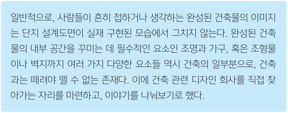 홍성용_건축과 가구는 밀접한 연관이 있다고 할 수 있는데요. 특별한 가구를 디자인하시는 입장에서 건축이나 설계를 하는 건축사분들에게 하시고 싶은 말씀이 있다면?