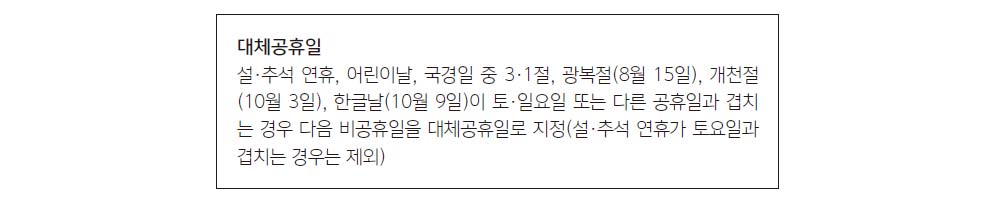 ■ 공휴일 및 대체공휴일에 대한 휴일대체