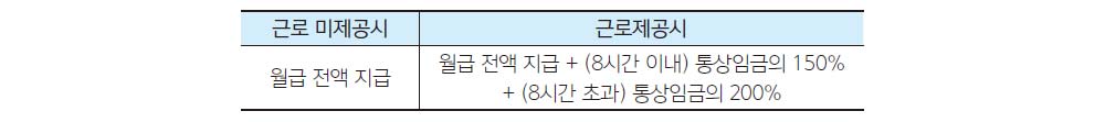 단, 만일 <월급제 근로자>가 공휴일 및 대체공휴일에 근로를 제공하였다면 사용자는 월급 금액 외에 「근로기준법」 제56조에 따른 휴일근로 가산수당을 포함한 임금을 추가로 지급해야 한다. 즉, ① 8시간 이내의 근로에 대해서는 통상임금의 50%를 가산한 150%를 추가 지급하고, ② 8시간을 초과한 휴일근로에 대해서는 통상임금의 100%를 가산한 200%를 추가 지급해야 한다.