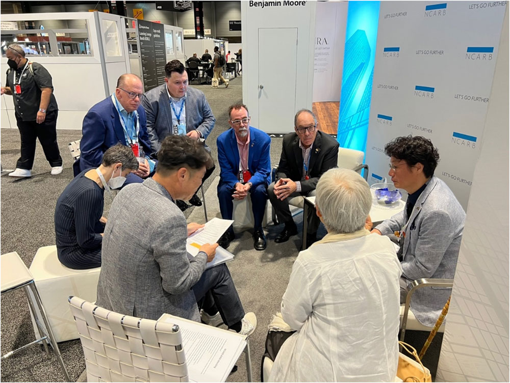 엑스포장 내 NCARB부스에서 NCARB와 우리측 교육원/등록원/국제위원회/APEC 등록건축사 위원회와 간담회를 갖고 상호 정보와 의견을 교환하는 시간을 가졌다.