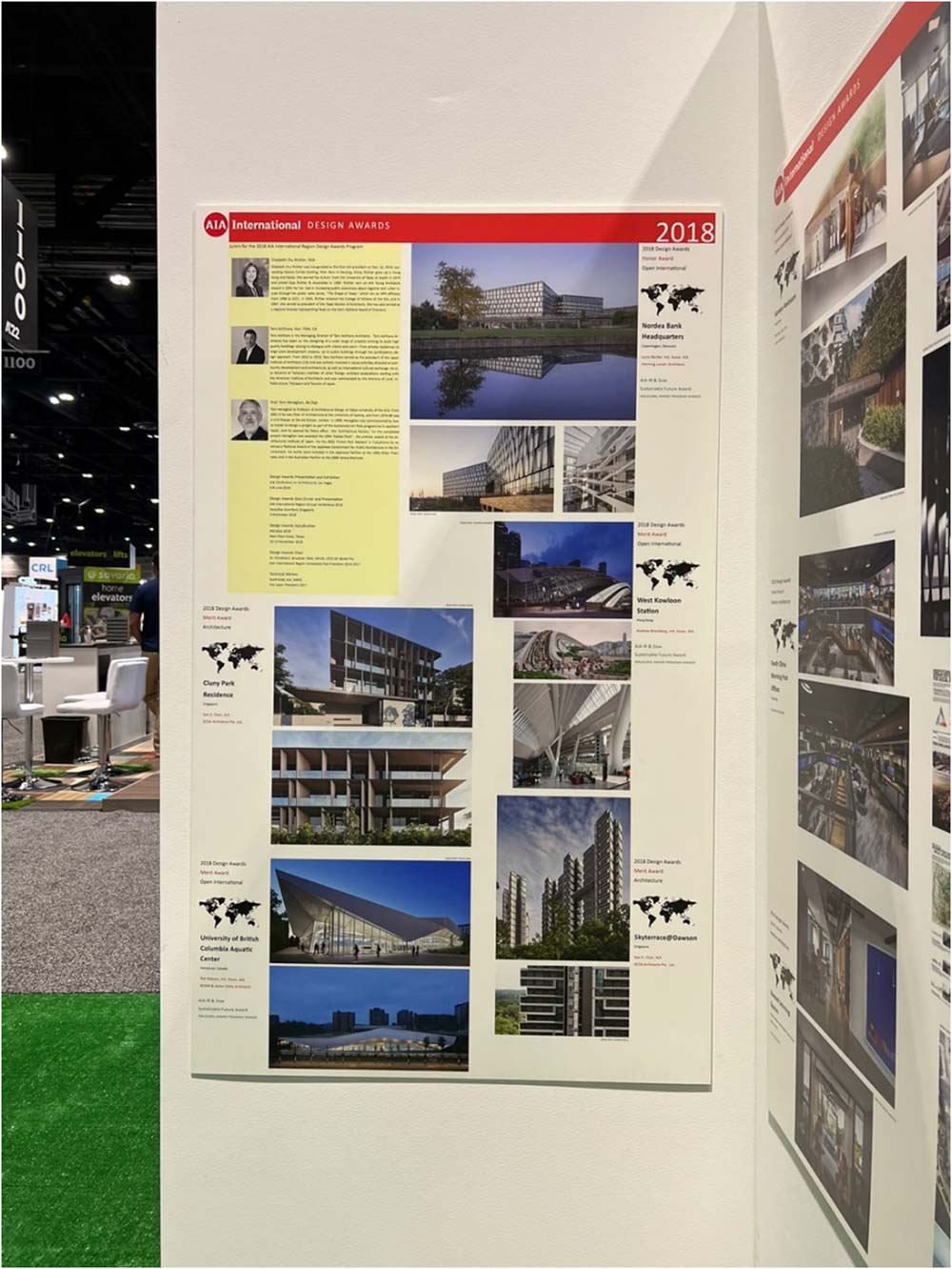 이번 AIA 엑스포에서 특기할 만한 몇가지의 내용을 추가로 언급한다면 전시장 한쪽에 마련된 AIA Chicago 부스이다. 대회가 열리는 도시가 시카고인만큼 주최 도시의 부스가 따로 구성되었다는 것은 의미 있는 것이다. 특히 그 전시공간에 모여든 건축사들이 삼삼오오 앉아서 환담을 나누는 것이 눈길을 끌었는데 전시된 패널을 자세히 보니 그들이 생각하는 건축사의 사회적 책임에 대한 기성건축사와 신진건축사 간의 연대방식이 눈에 들어왔다.