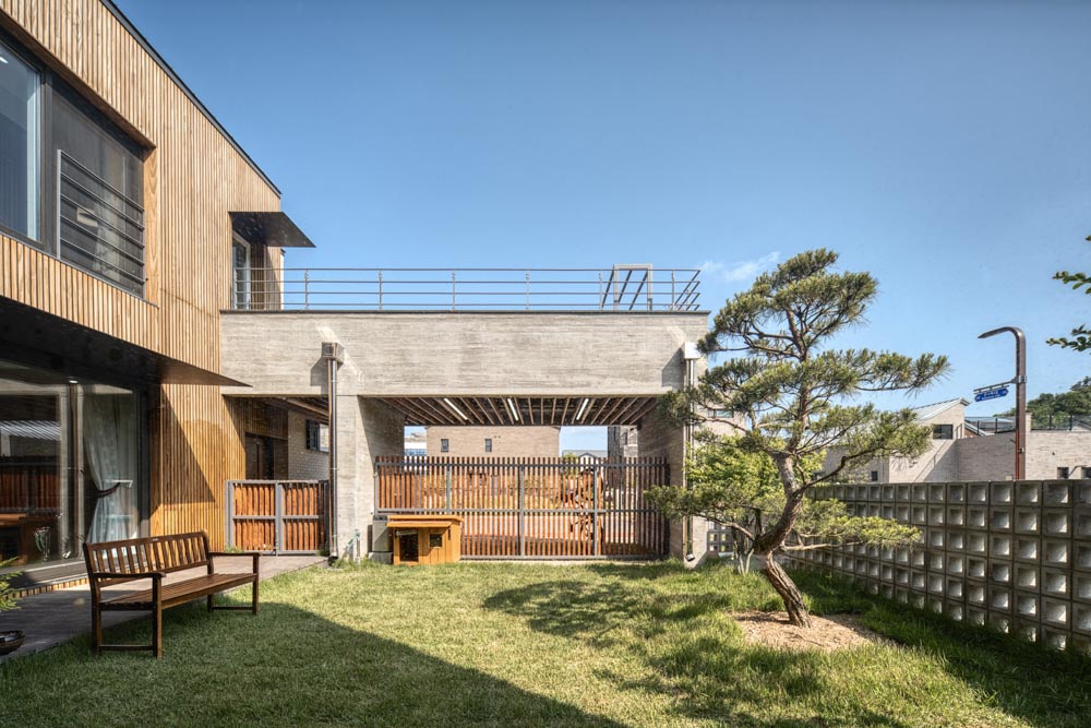 Due to the gable roof by district unit guidelines, the second floor has a tall floor height to give a sense of openness, and a private terrace deep inside the second floor and an open terrace with a vegetable garden facing the road are placed for them to use outdoor space according to their mood and situation. On this road-facing terrace, there is also a frame to hang out the laundry on a sunny day. Following this project, we are currently planning a detached house Ⅱ in Saesol-dong.