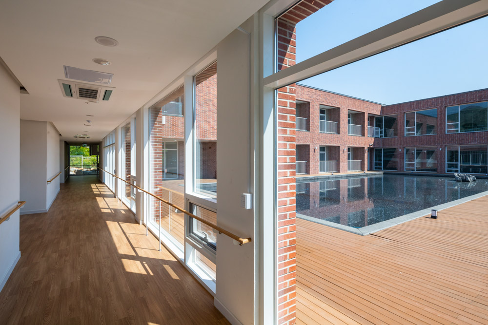 During the designing phase, the courtyard was considered as a garden but gardening could become a nuisance for the elders, it was decided as shallow water-space which also called as the pond.