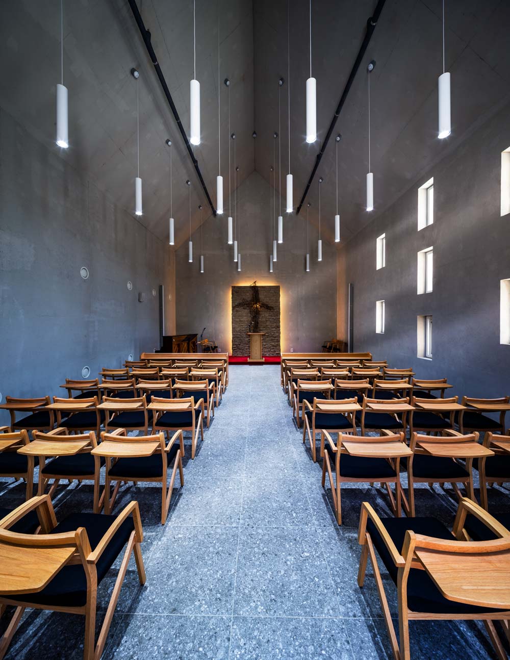 기능은 일인용 숙소와 식당 그리고 40명 정도 수용 가능한 작은 채플로 구성되어 있다.