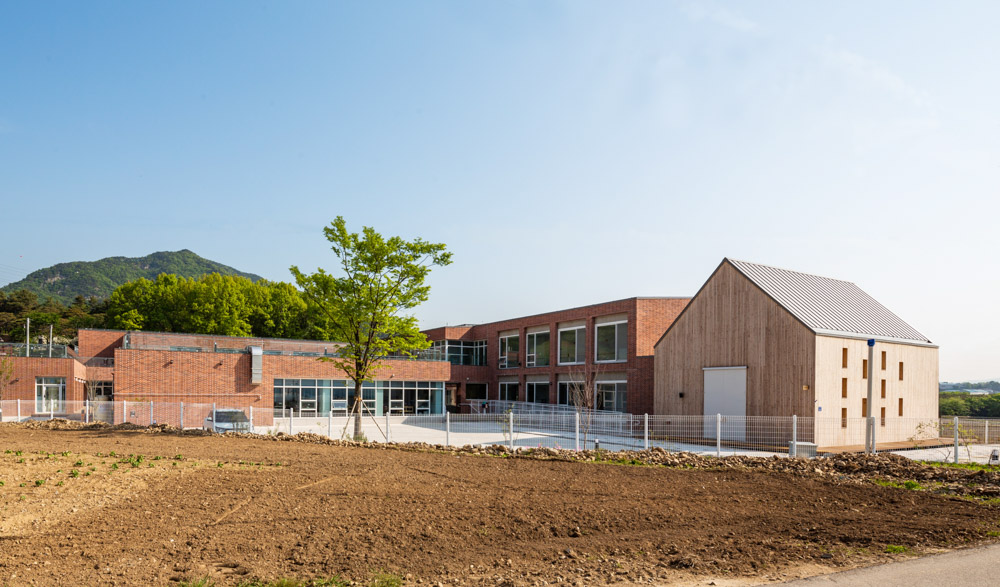 외관은 어찌 보면 작은 학교 건물 같기도 하고, 어찌 보면 기숙사 건물 같기도 하다. 벽돌로 치장된 격자형의 균일한 사각형 유닛이 반복되며, 간결하되 익숙한 외관을 이루고 있기에 더욱 그렇다. 삶이란 무릇 일상의 반복과 익숙함이 빚어내는 풍경 아닌가. 마치 이를 웅변하듯, ‘세빛자매원’은 힘을 빼고 간결하며 반복된 입면을 드러낸다. 고단한 여행을 마치고 돌아온 이들을 가장 따뜻하게 맞이할 것도 반복의 일상이 주는 여유로움 아니겠는가. 낮게 자리 잡은 건물과 2층의 옥상이 각각의 마당과 같이 사용된다는 점도 돋보인다. 긴 동선 끝에 만나게 되는 옥상 마당은 과도하게 채우지 않고 비워둠으로써 또 다른 즐거움을 선사한다. 중정에서 벌어지는 작은 행사를 2층의 옥상과 마당에서도 함께 즐기는 모습이 연상된다. 건물의 한쪽 끝단에는 교회당이 놓여 있다. 주차장에 붙은 작은 교회당은 재료와 형태 모두에서 다른 건물과 독립된 건물로 인지되며, 외부에서 접근성도 쉽다. 한눈에 건축사가 정성을 기울인 공간임을 알 수 있는데, 다른 건물이 벽돌로 이루어진 평지붕에 가까운 건물임에 비해, 경사가 급한 박공지붕에 목재로 마감한 외장은 생활공간과의 차별성을 부각하며 이곳이 성스럽고 특별한 공간임을 드러낸다. 그렇다고 벽돌과 이질적이지도 않다. 내부는 콘크리트 색감으로 소박하게 마감되었고, 측면에서 들어오는 빛을 받아들이기 위해 사각형의 창문이 여럿 어긋나며 배치된다.