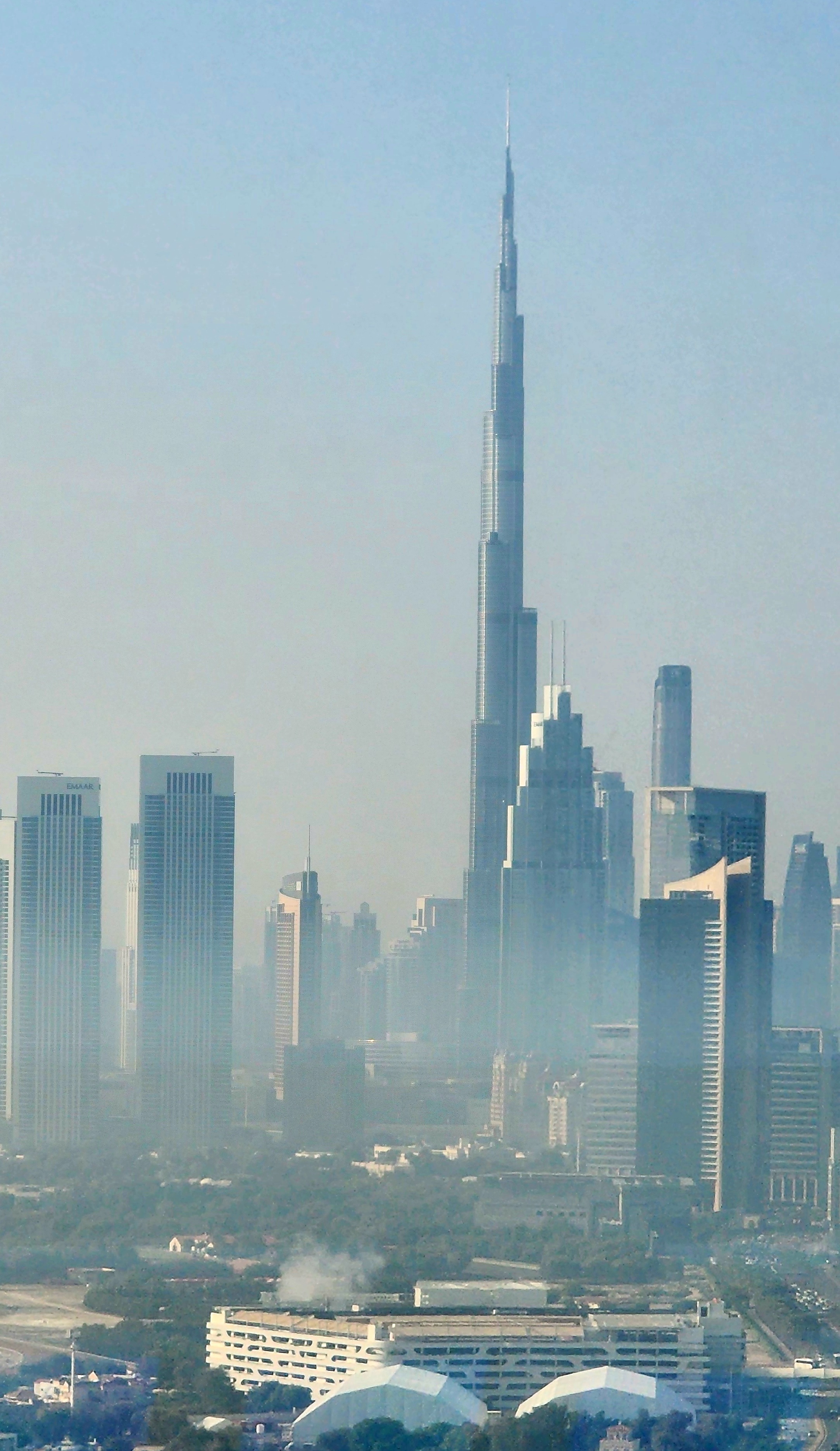 고층 빌딩 숲 속에 우뚝 솟아 있는 부르즈 할리파(Burj Khalifa)