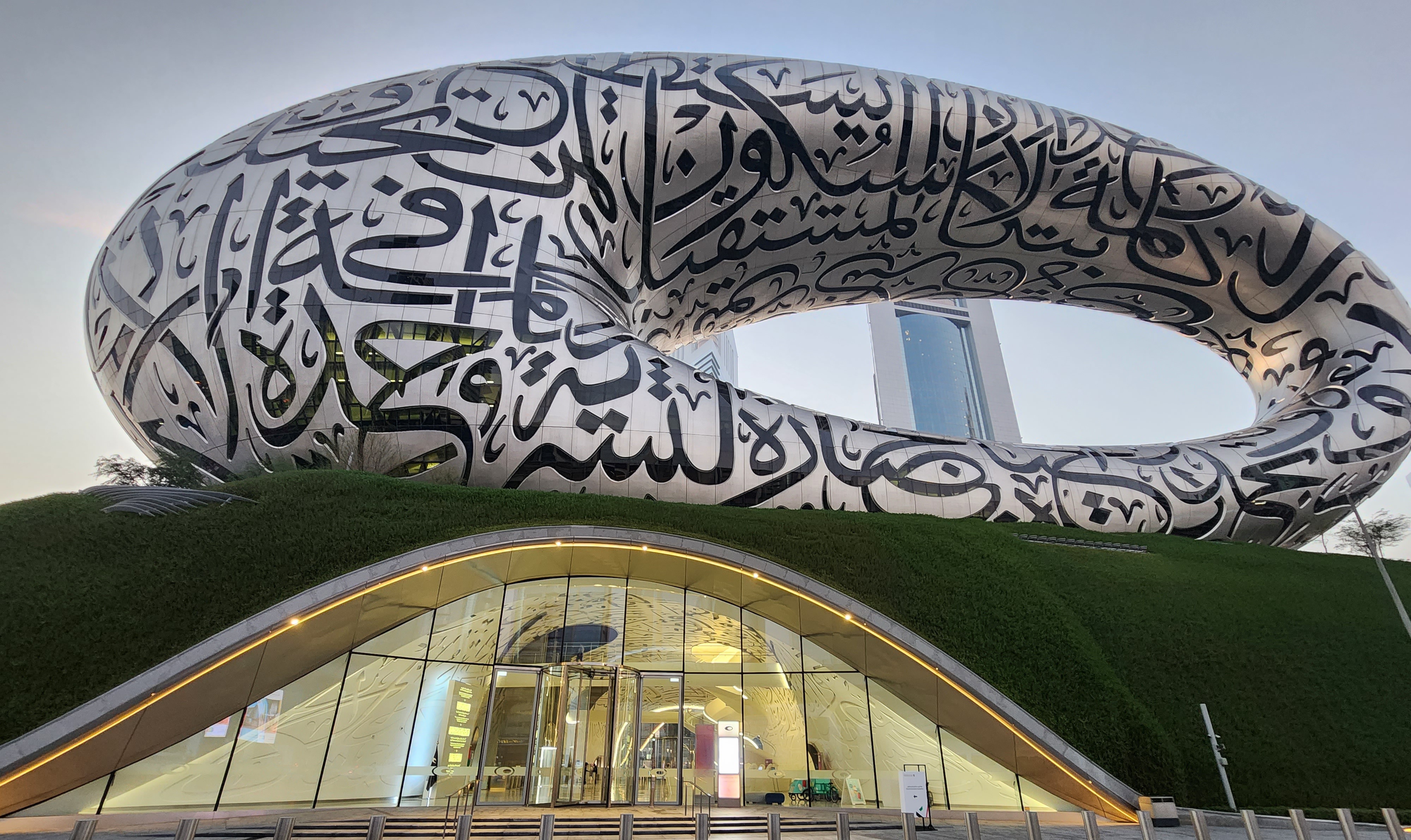 두바이는 현대건축물의 종합 전시장 같은 곳인데, 그중 2022년 2월 23일 개관한 미래박물관은 인류 혁신과 새로운 기술의 트렌드를 상징하는 독특한 외관을 보여주고 있다. “삶의 새로운 변화, 문명의 진화, 인류 발전의 비결은 간단하다. 그것은 혁신이다. 삶은 유한하지만, 혁신과 창의의 산물은 오랜 유산으로 남을 것이다.” 이 문구는 무함마드 빈 라시드 알막툼 UAE 부통령의 글로, 박물관 입구에 새겨져 있다.