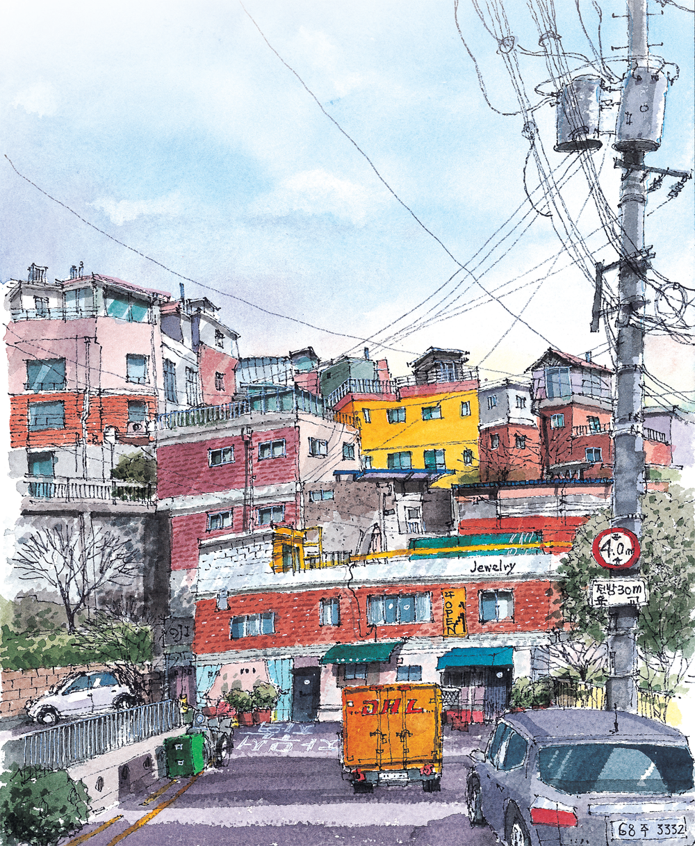 포개어 앉은 수많은 작은 집들 만큼이나 사연도 많은 마을이라서 그런지 정겹다. 지형의 경사를 따라 옹기종기 모여 있는 소박한 집들에서는 삶의 고단함과 애잔함까지 느껴진다. 특히, 가파른 계단과 좁은 골목길은 유년 시절의 향수가 짙게 묻어나는 곳이라서 시선이 가는 곳마다 스케치북에 담고 싶은 유혹을 느낀다. 이곳에도 슬그머니 봄이 오고 있다.