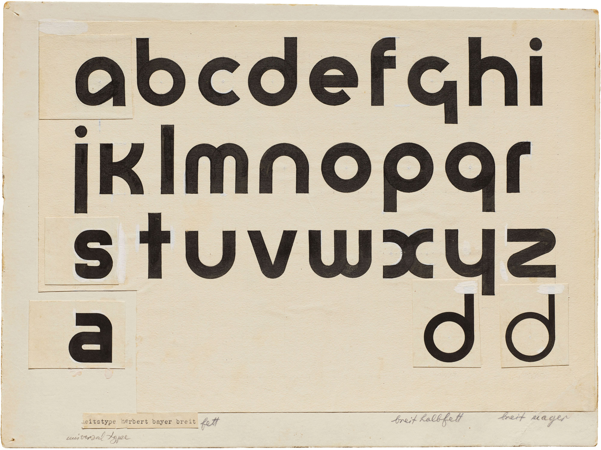 1920년대 중반 바우하우스의 디자이너들은 대문자와 소문자를 함께 쓰는 것이 비효율적이고 비경제적이라고 판단했다. 바우하우스의 뛰어난 그래픽 디자이너인 헤르베르트 바이어는 ‘유니버설’이라는 글꼴을 개발했는데, 대문자 없이 소문자로만 구성되어 있다.<사진 10> 문장을 쓸 때도 대문자를 쓰지 않고 전부 소문자로만 쓰는 경우가 있다. 비례에 예민한 사람들에게 문장 첫 글자의 대문자가 튀어 보일 수 있다. 디자이너들에게는 문장을 쓰는 관습보다 글자들의 조화로움이 더 중요할 수 있다. 소문자로만 쓰인 문장이 더 조화롭고 아름답다고 할 수 있는 것이다. 현대인은 첫 글자가 대문자로 쓰인 문장에 익숙하기 때문에 그 조합이 지극히 자연스럽다. 하지만 그런 관습과 편견에서 벗어나면 소문자로만 구성된 문장이 더 간결하고 좋아 보일 수 있다.