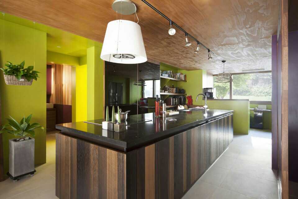 그래서 필요한 것이 커다란 아일랜드형 공간이다. 1미터 폭에 3.4미터 길이니 대형 식당의 조리대와도 같다. 집에서 필요한 모든 행동들이 가능한 공간이다. 그리고 이 아일랜드형 작업대 앞뒤로 보드역할을 할 대형 슬라이딩 유리도어를 설치한다. 안을 가득 채우고, 그러면서 여러 가지를 배우고, 마음을 그리고 또 다시 마구 지웠던 그 글라스보드는 사용자의 창의력을 키우고 호기심을 충족시킨다. 칸칸이 열어 확인하기 힘든 싱크대 장 대신, 커다란 선반에는 커피머신과 예쁜 커피잔들이, 책들과 사진들이 놓인다. 베란다는 햇살을 가득 품는 서재가 된다. 이 집은 낡은 1980년대 옛 모습을 뒤로하고 이렇게 살아남은 듯하다.