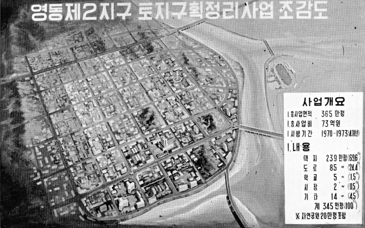 토지구획정리사업과 도시 개발 1950~1960년대의 도시재건 시기를 지나 1970~1990년대까지 서울은 영동개발계획으로 인한 강남개발 외에도 역사 도심부의 곳곳도 재개발을 진행하여 현재의 역사 도심부 건물의 규모와 높이의 기준이 되었다. 1986, 1988년 아시아선수권대회와 88올림픽은 도시의 무허가 건물지역일대, 노후지역을 철거 정비하고, 대대적인 잠실개발의 기회로 활용하며, 도시 내 취약계층들의 저항운동이 시작되는 계기가 되었다.