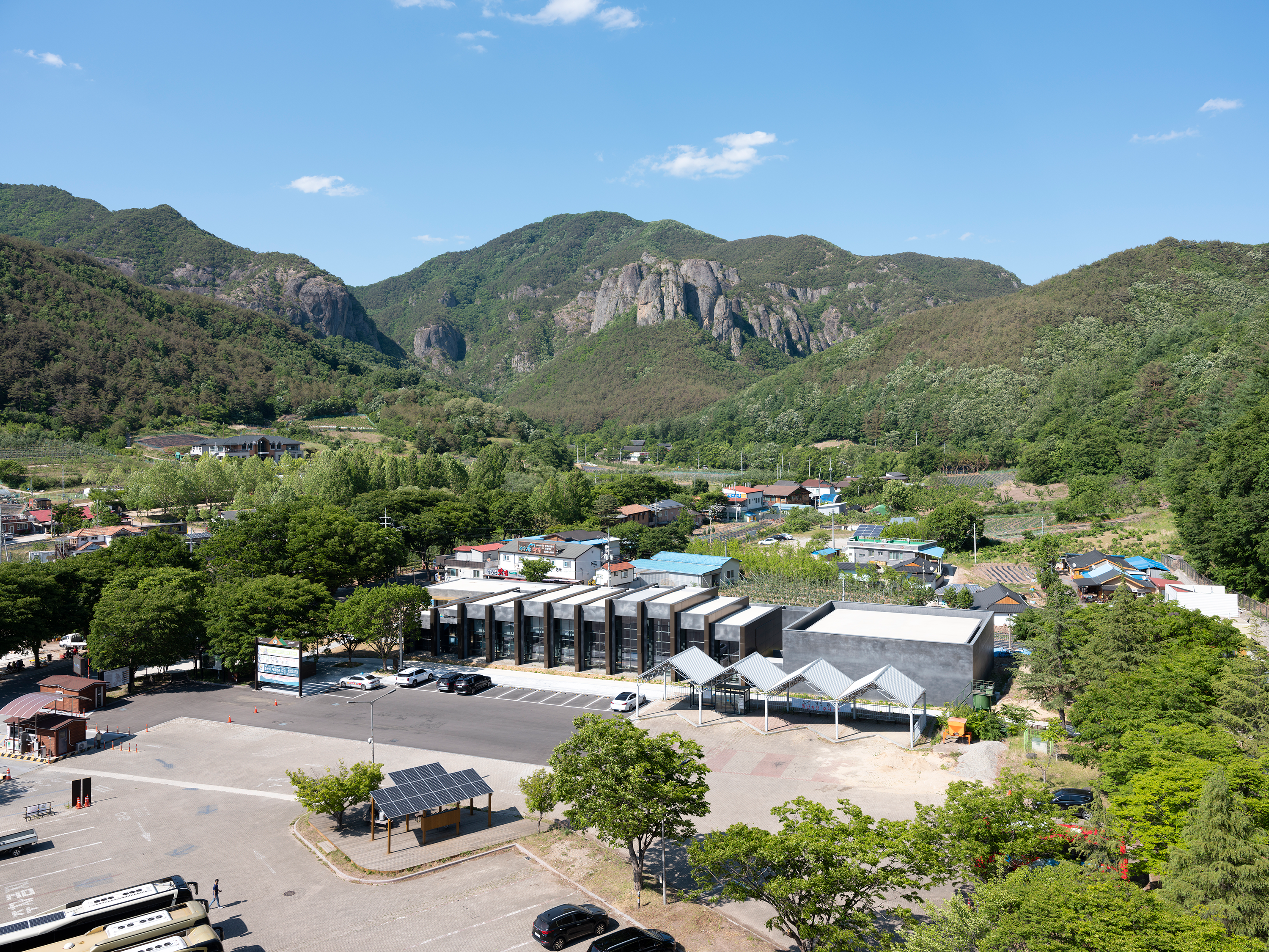 새롭게 준공된 탐방안내소는 기존의 탐방안내소 뒤편에 위치해야 했는데, 기존의 탐방안내소가 철거되고 나니 신축된 탐방안내소는 기암절벽을 배경으로 그 자태가 더욱 오롯할뿐더러, 주왕산을 찾는 이들이 초입에 들어서며 가장 먼저 발견할 수 있게 되었다. 건축물의 면적에 비해 부지가 넓은 편이어서, 1층으로 구성된 여러 개의 건물을 엮을 수 있었다. 이는 인근의 주거건물들과 병풍처럼 둘러싸인 자연을 방해하지 않고, 주어진 자리에서 제 역할을 할 수 있게 해주었다.